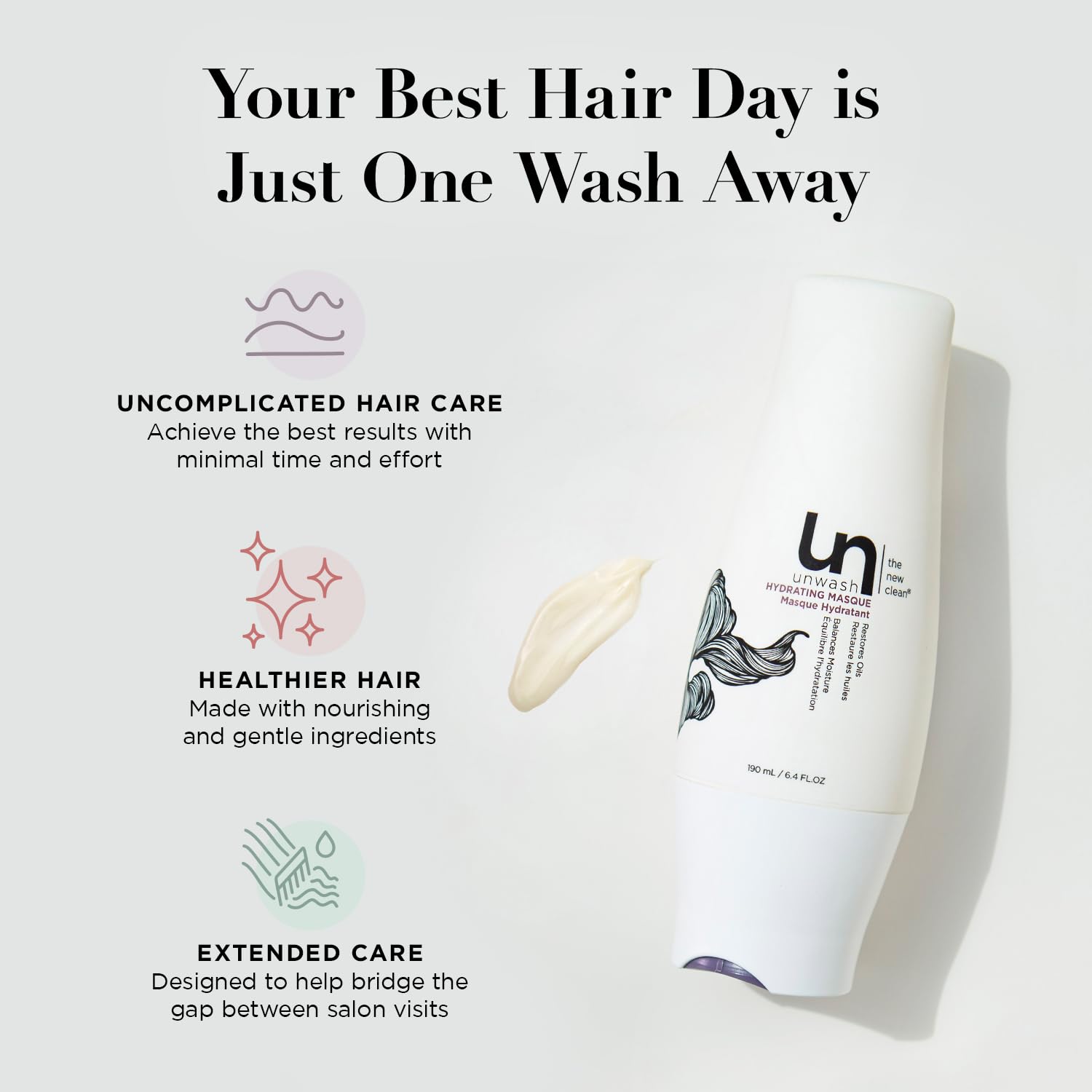 unwash Hydrating Hair Masque - Deep Conditioning & Restorative Hair Treatment for Damaged, Dry & Colored Hair, Sulfate & Paraben Free, Made w/Argan and Coconut Oils, 13.5 Fl Oz