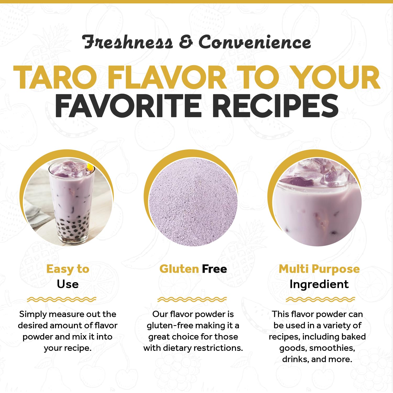 - 𝐌𝐮𝐥𝐭𝐢-𝐩𝐮𝐫𝐩𝐨𝐬𝐞 𝐢𝐧𝐠𝐫𝐞𝐝𝐢𝐞𝐧𝐭: This Taro Bubble Tea Flavoring Powder can be used in a variety of recipes, including baked goods, smoothies, drinks, and more. It's a versatile ingredient that can be added to almost anything to give it a nutty flavor.