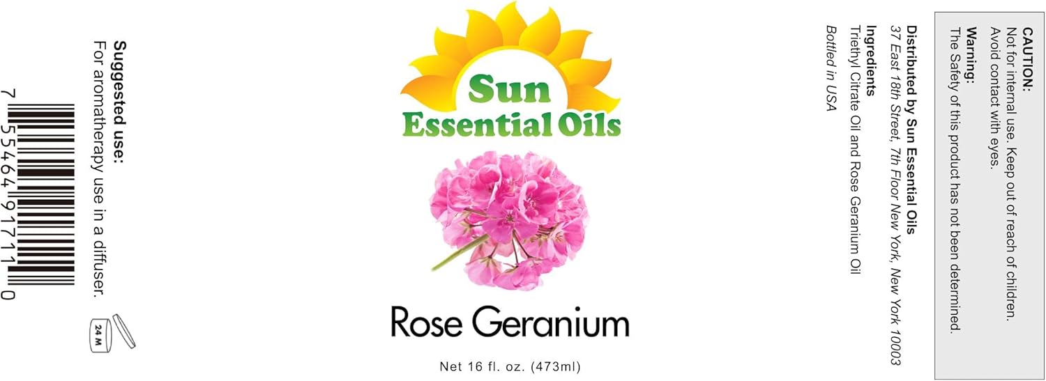 Sun Essential Oils - Rose Geranium Essential Oil 16oz for Aromatherapy, Diffuser, Calming, Skin Care
