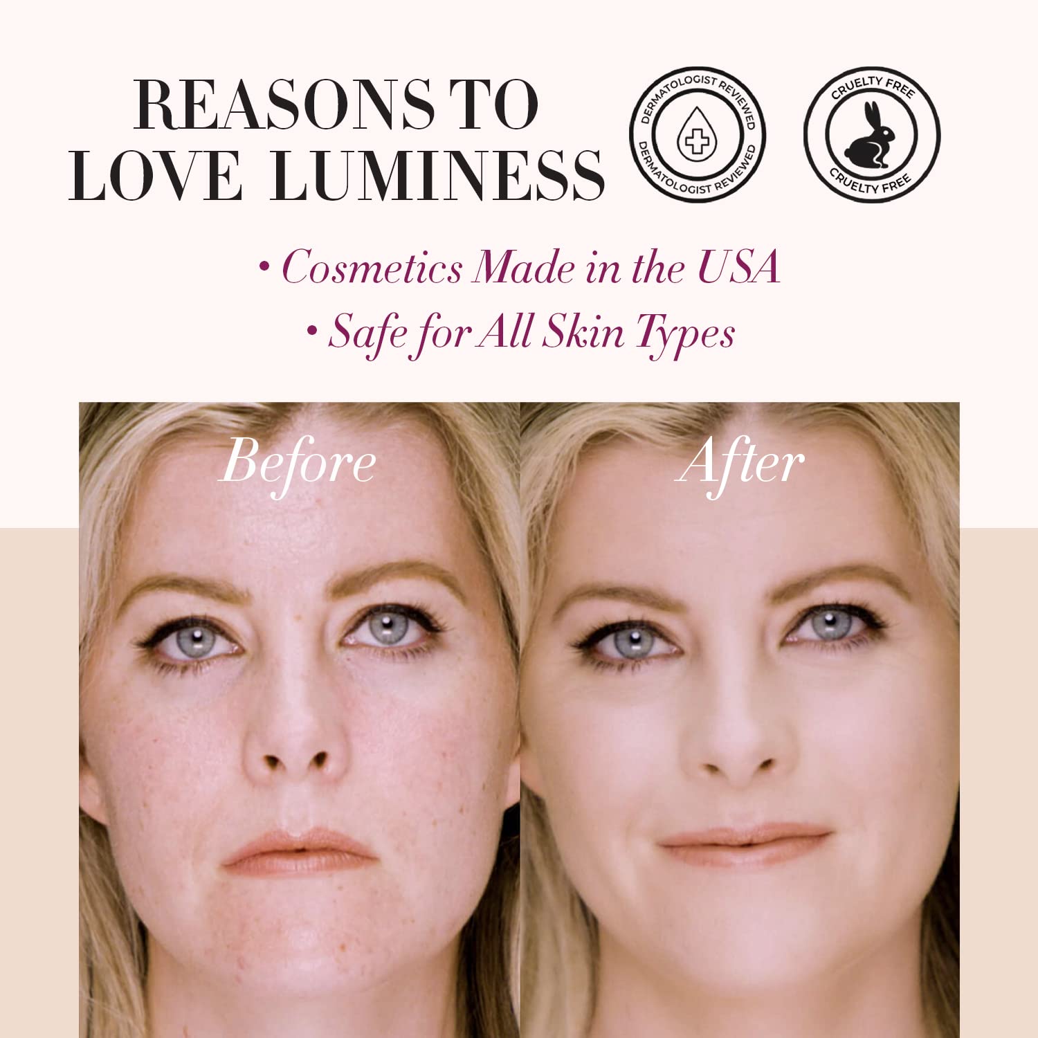 - Reasons to Love LUMINESS: Our airbrush foundation is cruelty-free, dermatologist-reviewed, made in the USA, and safe for all skin types.