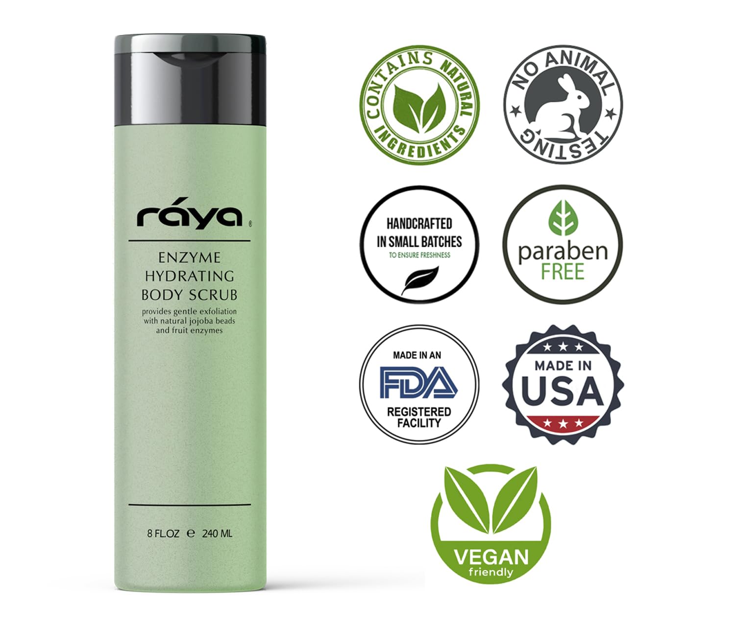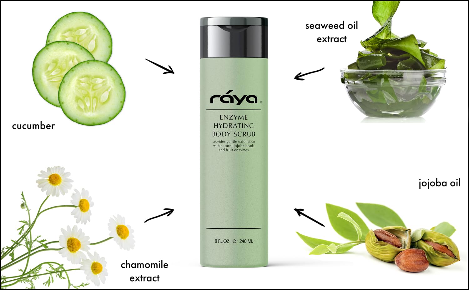 RAYA Enzyme Hydrating Body Scrub 8 oz Cucumber Scent (S-104) | Gentle and Exfoliating Body Scrub | Made with Seaweed, Jojoba Beads, and Fruit Enzymes