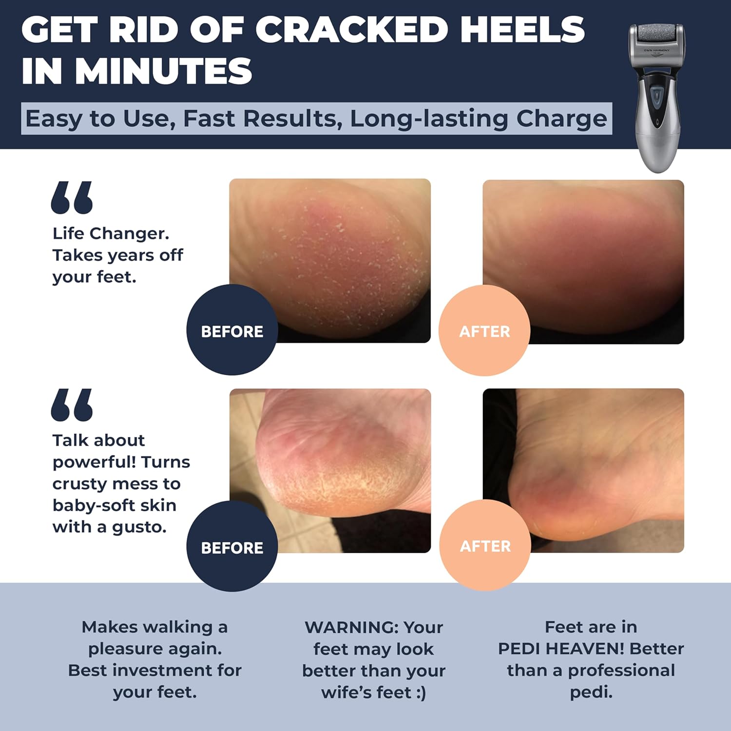 Electric Callus Remover: Rechargeable Electronic Foot File CR900 by Own Harmony(Tested Most Powerful) Best Pedicure Tools w 3 Rollers Professional Pedi Feet Care Sander for Cracked Heels and Hard Skin