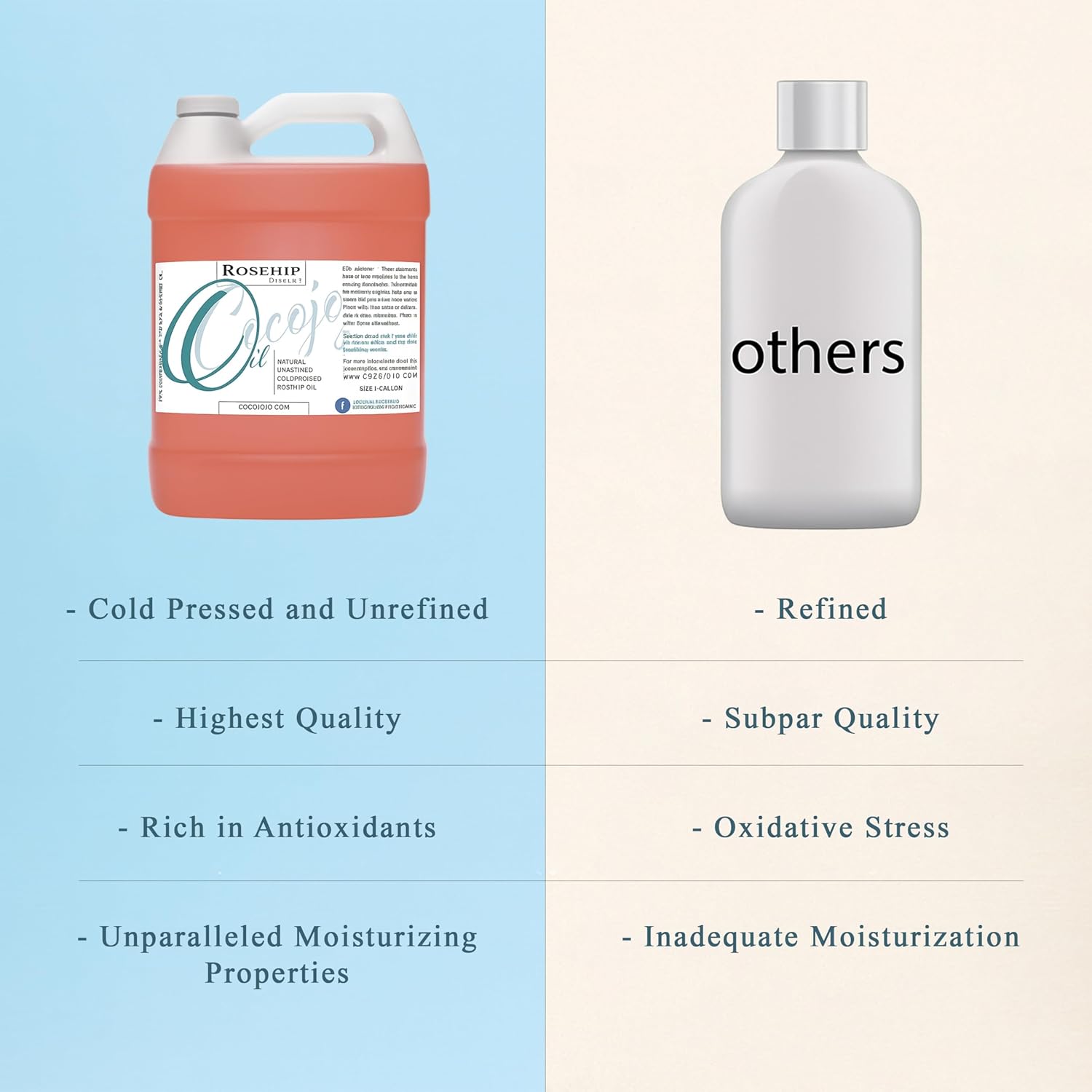 - NOURISHING – Rosehip Oil contains Vitamins A, B, C and D, which are antioxidants that promote radiant, youthful skin and lustrous hair. These antioxidants make Rosehip Oil soothing to use, even on sensitive skin, so that all skin types are able to benefit from Rosehip Oil.