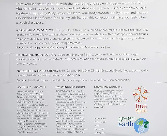 Pure Fiji Nourishing Trio, Ideal Spa Bath Gift Set for Women - Travel Kit - Includes Exotic Body Oil , Hydrating Body Lotion For Women and Nourishing Hand Cream, Mango Scent