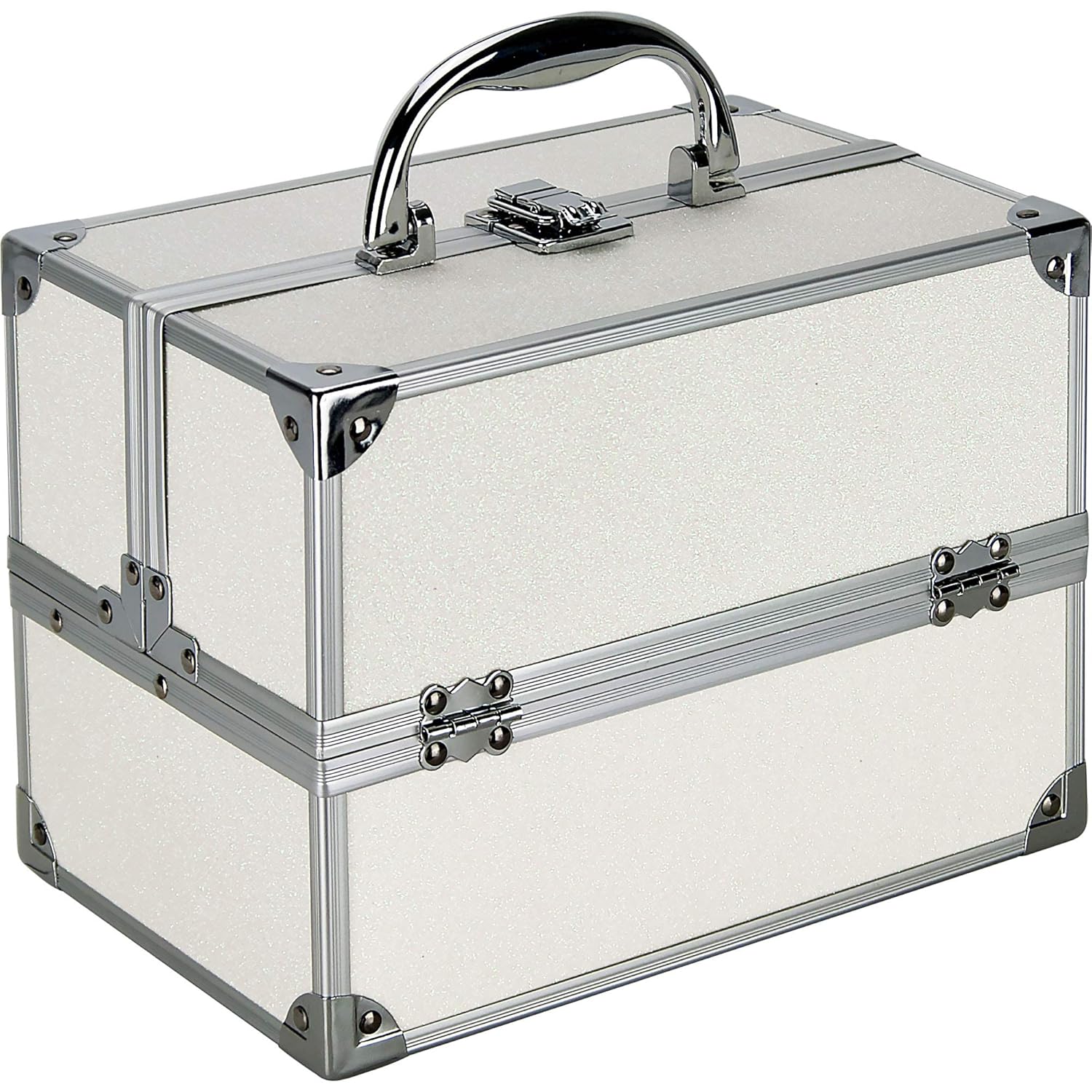 55pcs Makeup Gift Set Kit Train Case With Extendable Trays (eyeshadow, Blushes, Lipstick & More) - Vmk1304, White Glitter