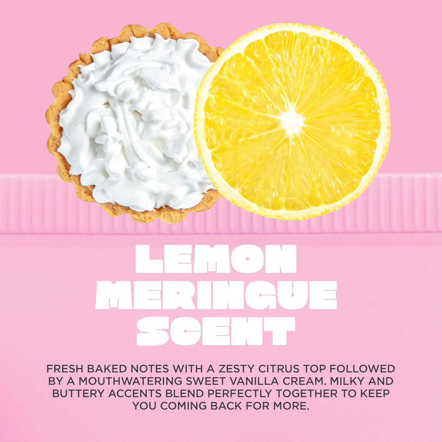 - LEMON MERINGUE PIE SCENT: A delightful aroma of a traditional Lemon Meringue Pie. Fresh baked notes with a zesty citrus top followed by a mouthwatering sweet vanilla cream. Milky and buttery accents blend perfectly together helping to create a delicious fragrance that keeps you coming back for more. Top Notes: lemon, orange, lime | Middle notes: milky, coconut, butter | Bottom Notes: sugar, vanilla, sweet.