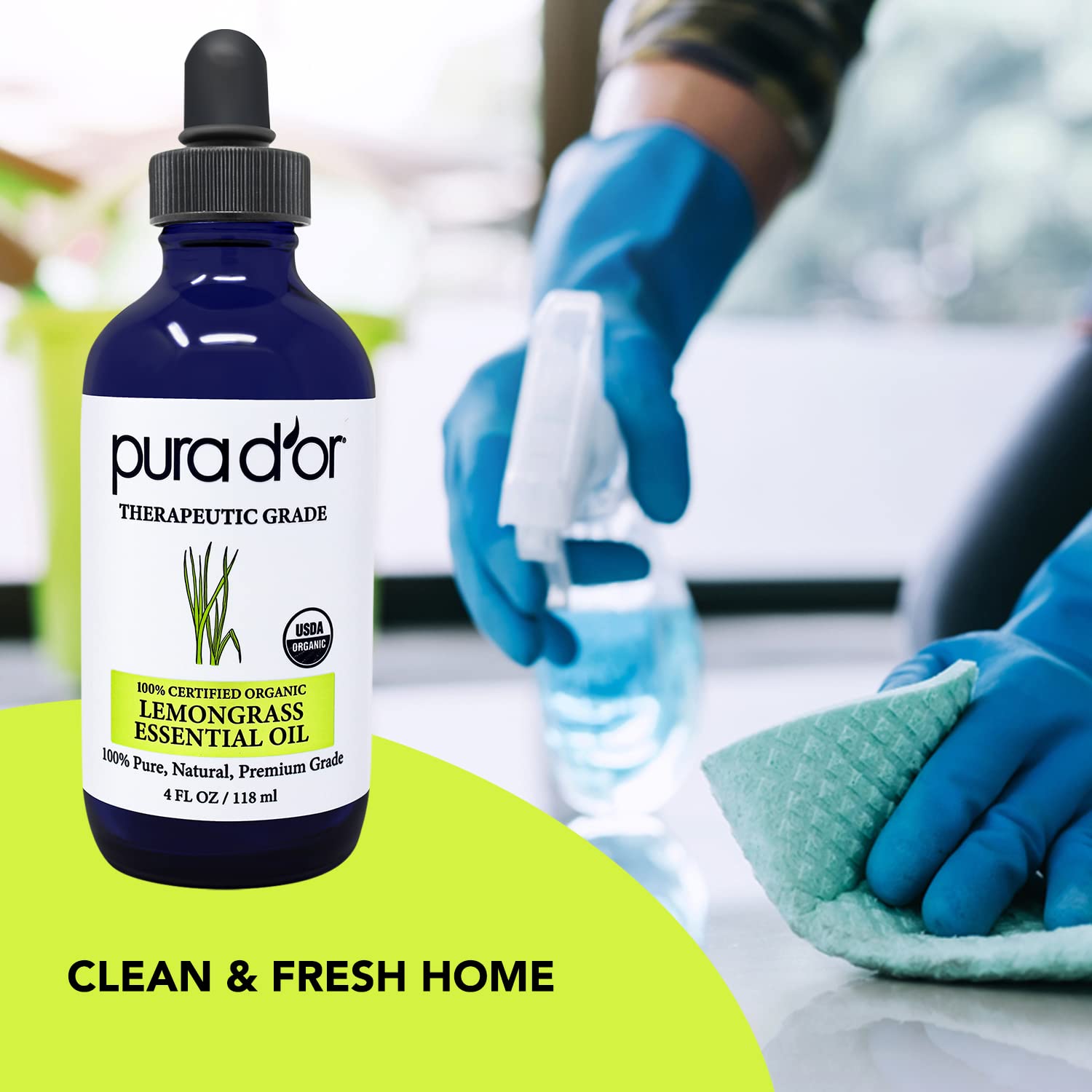 PURA D'OR Organic Lemongrass Essential Oil, 4oz, Therapeutic Grade, for Hair, Body, Skin, Aromatherapy, Relaxation, Massage, Vitality, Home, DIY Soap