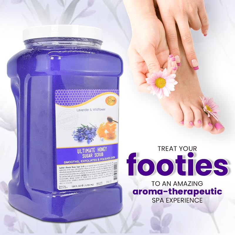 SPA REDI β Sugar Body Scrub, Honey, Lavender and Wildflower, 128 Oz Exfoliating, Moisturizing, Hydrating and Nourishing, Glow, Polish, Smooth and Fresh Skin - Body Exfoliator