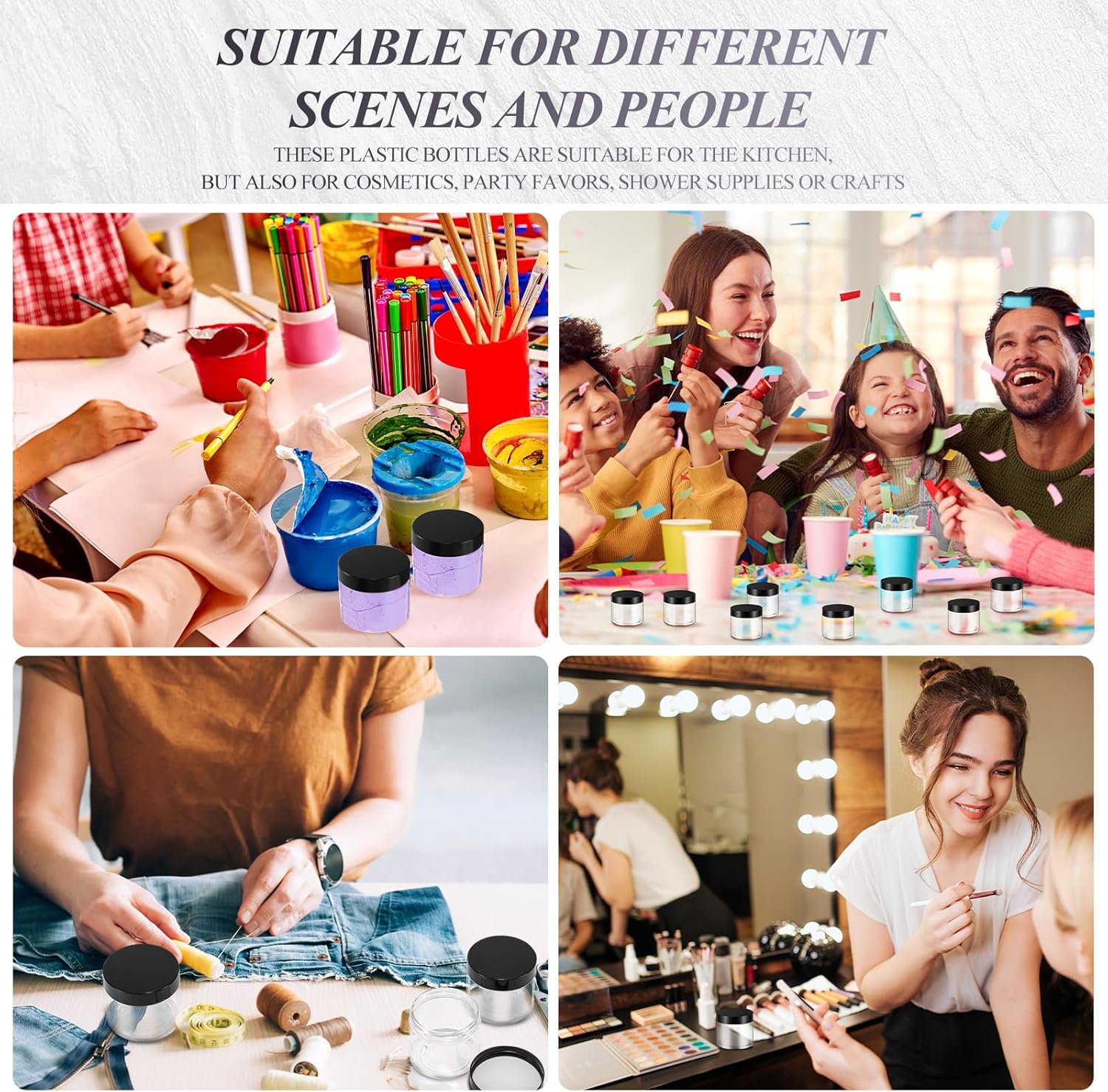 - Multi-functional container: good way to store your homemade cosmetic, body lotion, moisturizers, face masks, specimen collection, putty, lotions, fragrances, DIY, party favors, or other crafts, good tools in daily life