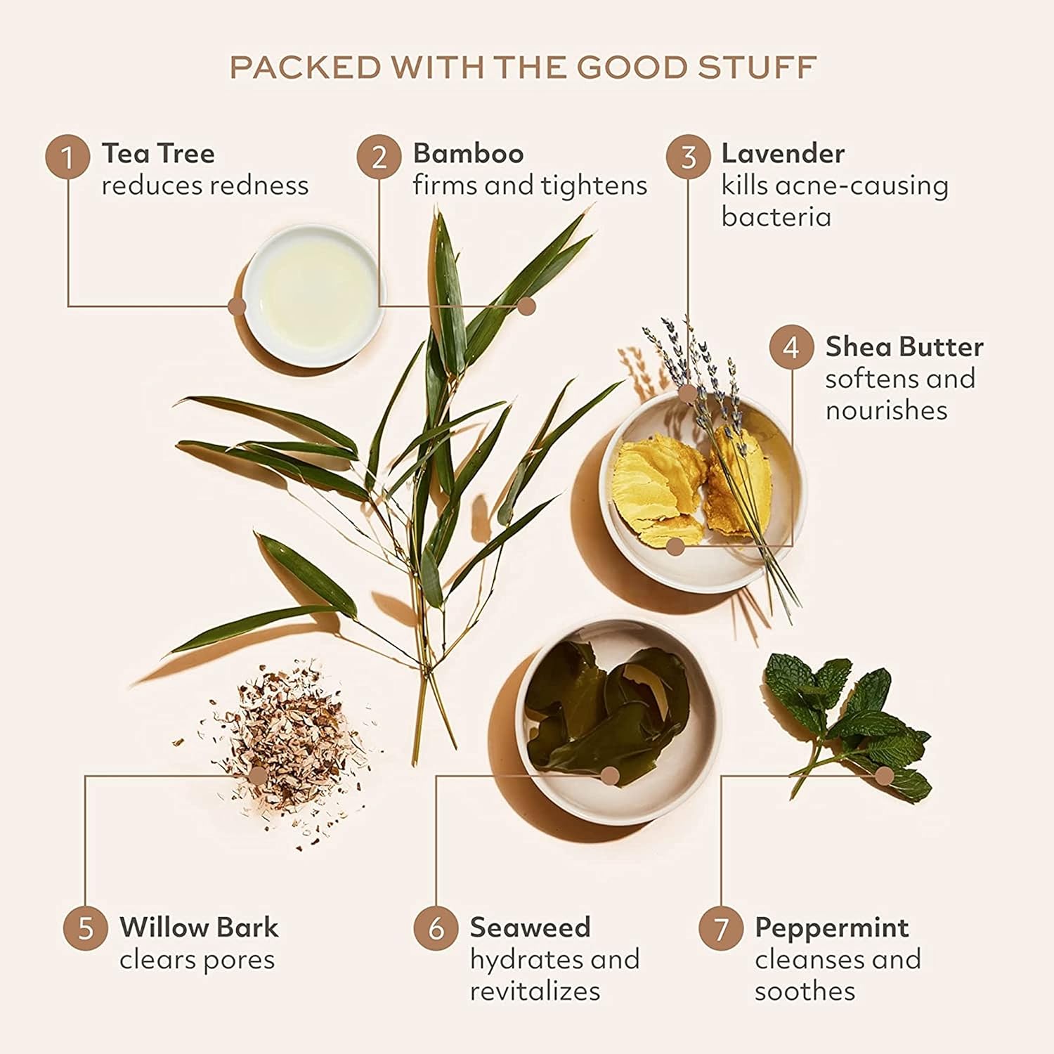 - Get Rid of Dark Spots: Nourishing Formula with Bamboo, Shea Butter, and Tea Tree extract. Our acne face wash deeply exfoliates to help fade dark spots, scarring, and any redness or discoloration.