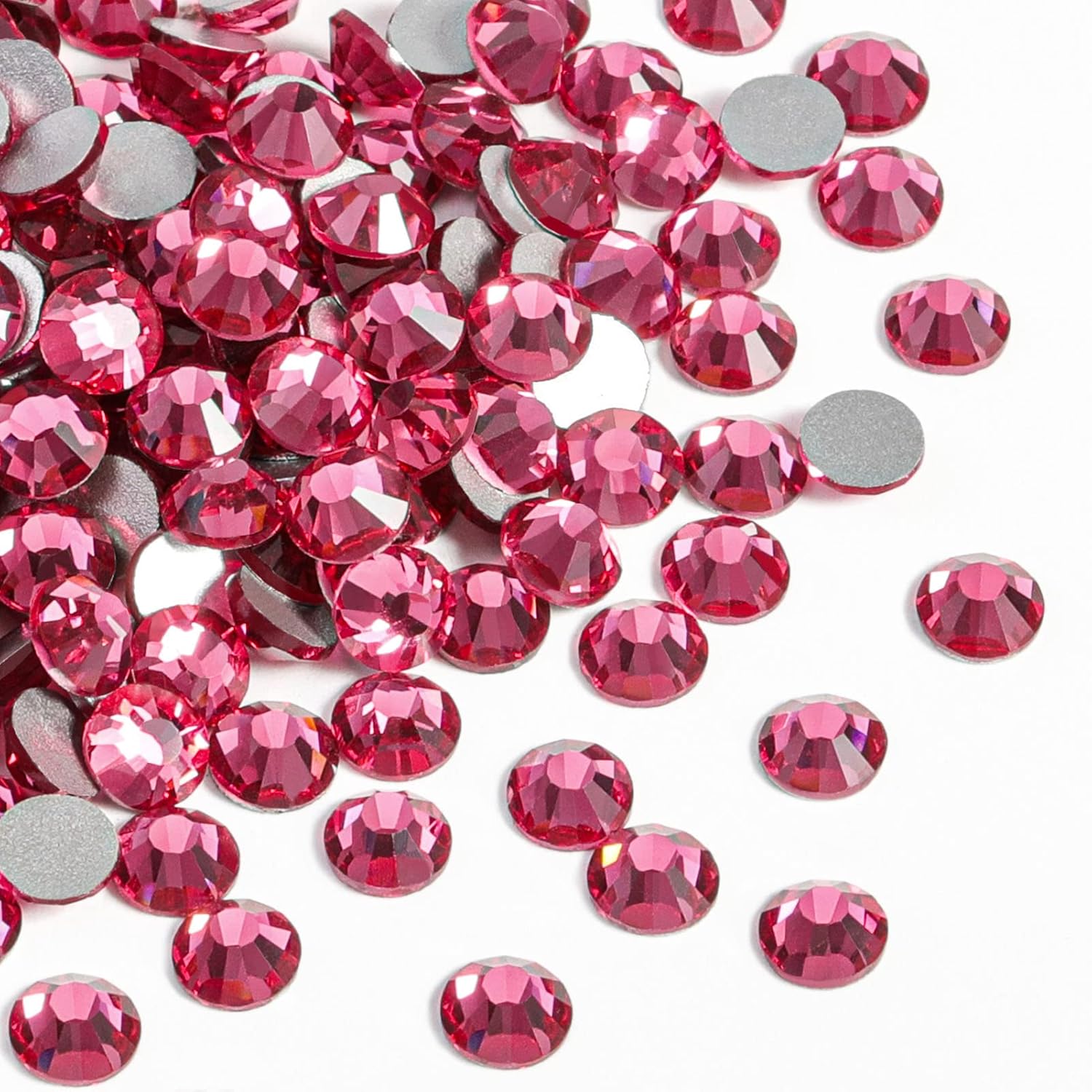 beadsland Flat Back Crystal Rhinestones Round Gems for Nail Art and Craft Glue Fix,Rose (4.6-4.8mm) SS20/1440pcs