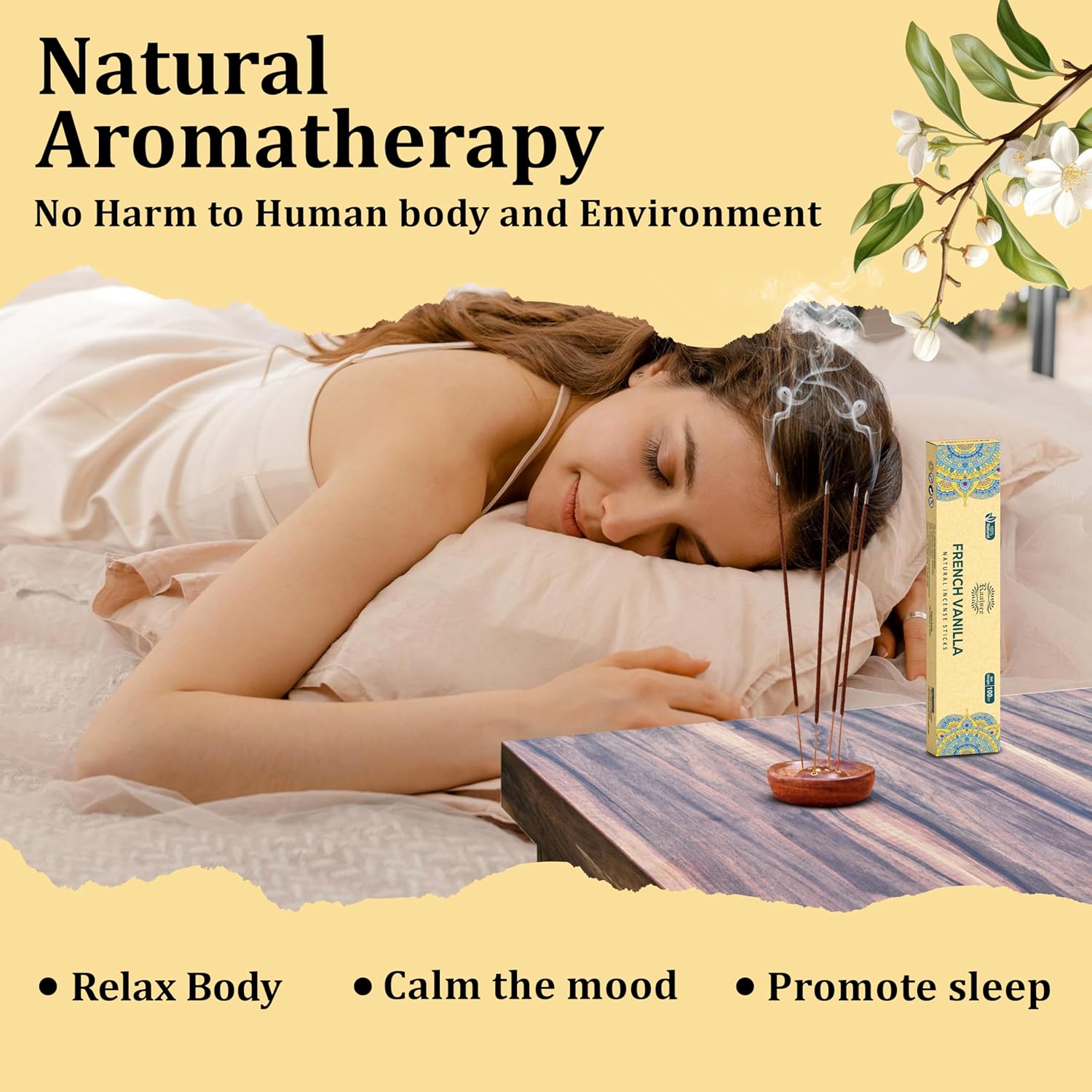 Raajsee French Vanilla Incense Sticks (180 gm), 100% Pure Organic Natural Hand Rolled Free from Chemicals - Perfect for Aromatherapy, Cleansing, Meditation, and Church (Pack of 12)