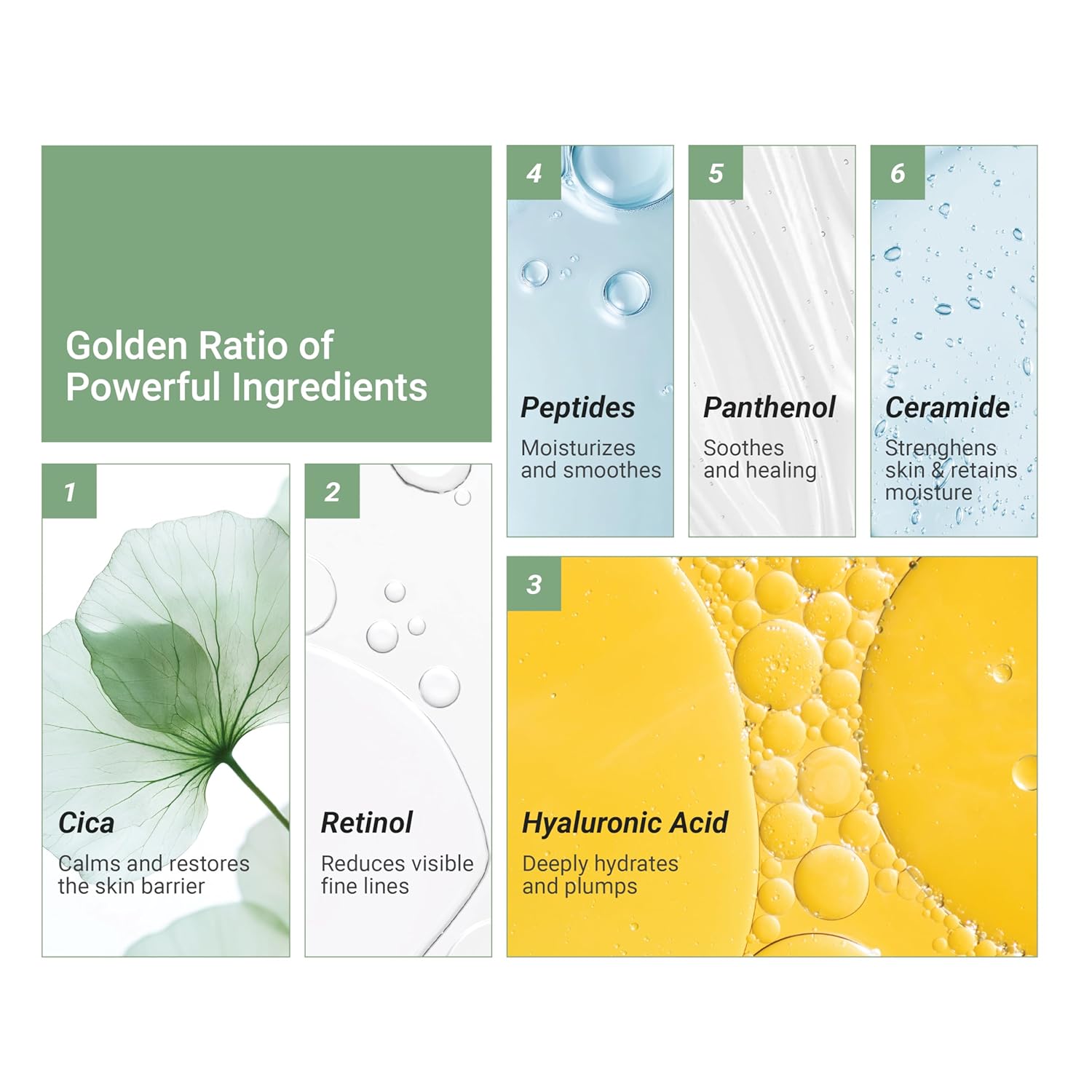 - ALL-IN-ONE SKINCARE: Combines Retinol, Peptides, and Korean Centella Asiatica (Cica) to soothe, protect, and reduce signs of aging while supporting a healthy skin barrier.