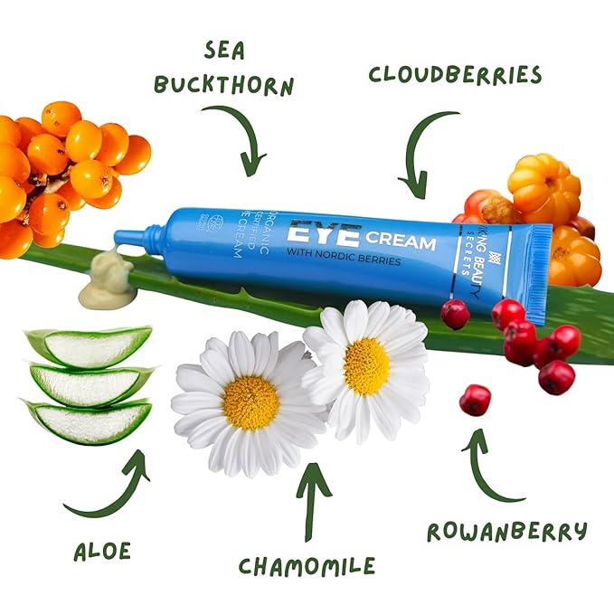 - 𝐂𝐞𝐫𝐭𝐢𝐟𝐢𝐞𝐝 𝐎𝐫𝐠𝐚𝐧𝐢𝐜 𝐈𝐧𝐠𝐫𝐞𝐝𝐢𝐞𝐧𝐭𝐬: Ecocert COSMOS Certified Organic Eye Cream. Contains certified organic and natural ingredients only. Our eye cream contains no harmful chemicals and is non-GMO. It is also free from Artificial Colors and Fragrances. All Viking Beauty Secrets products are cruelty-free.