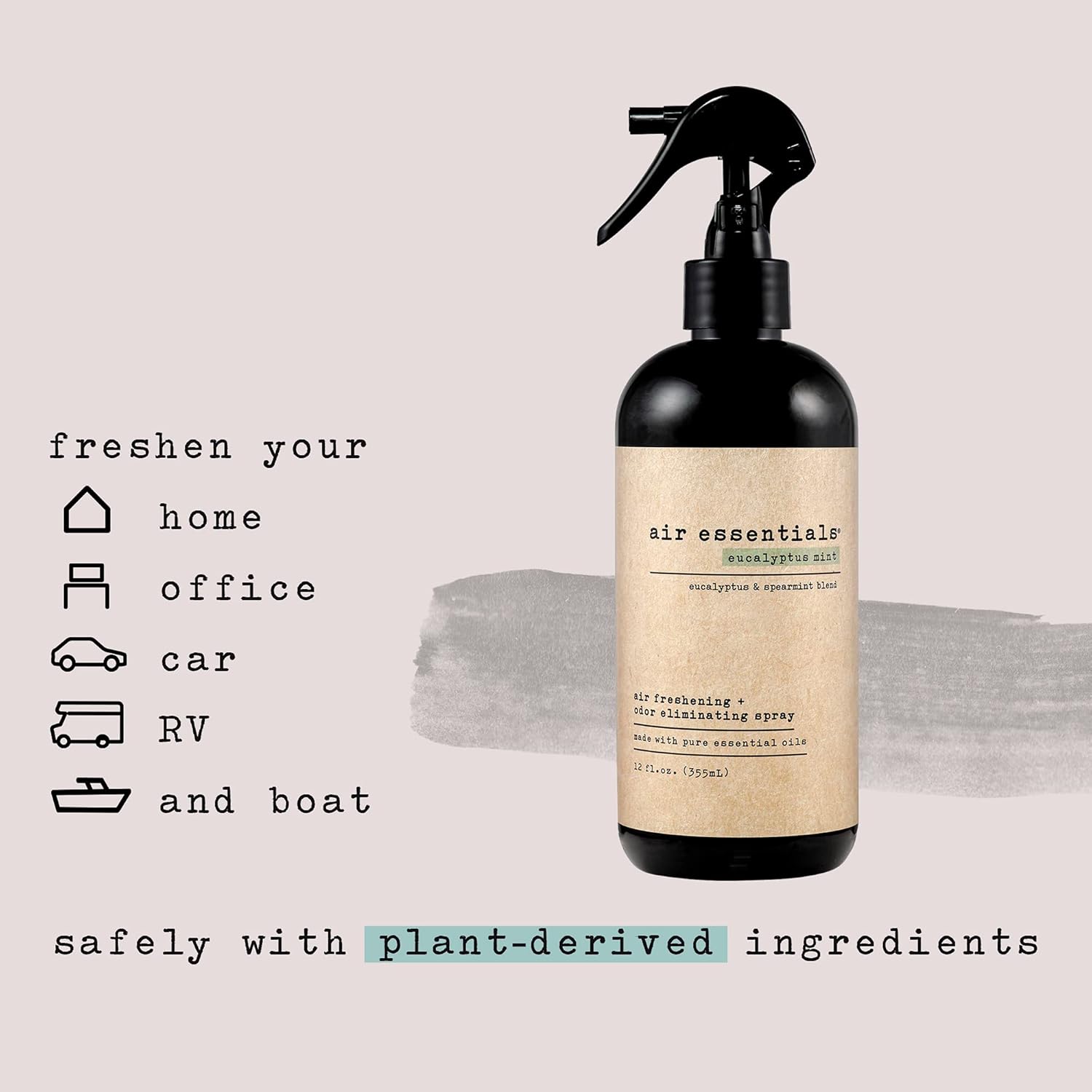 Air Essentials Air Freshener & Odor Eliminator Spray - 12 oz, Pack of 2 - Made with Pure Essential Oils - Eucalyptus Mint Scent