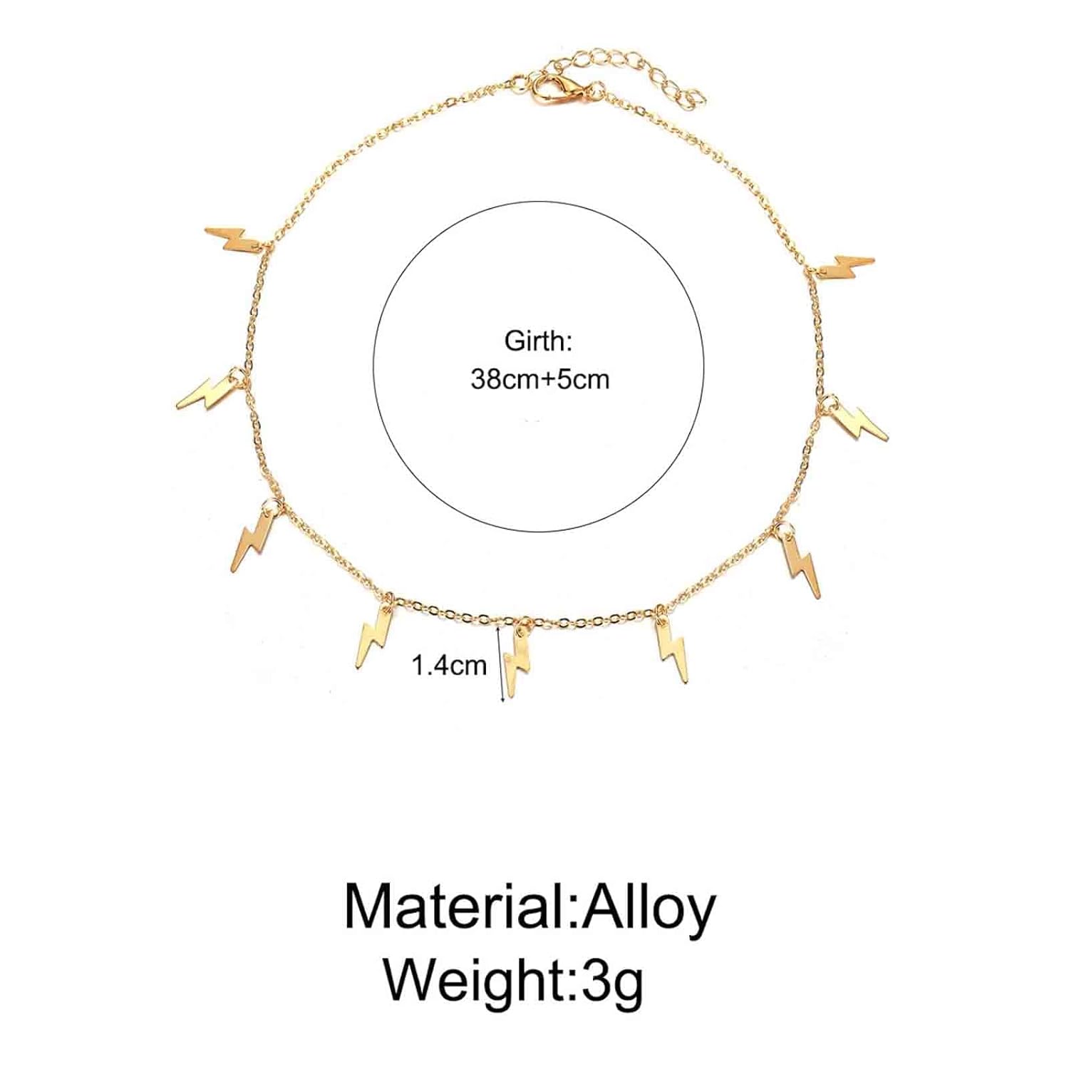 - Tiny Lightning Necklace Chain made of good quality alloy,easy to match with any outfit.