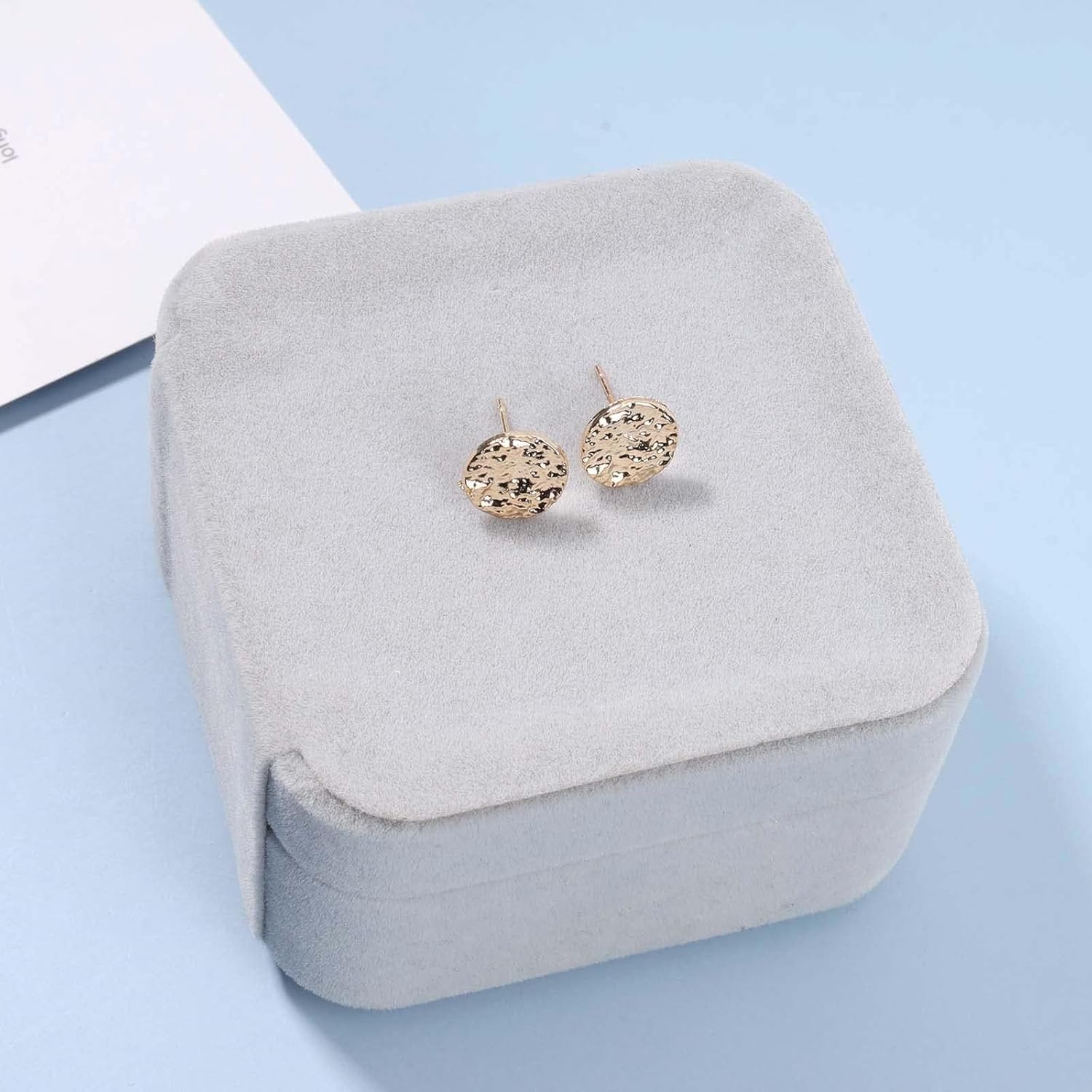 - Small textured coin earrings are available in gold,stay long and won't tarnish.