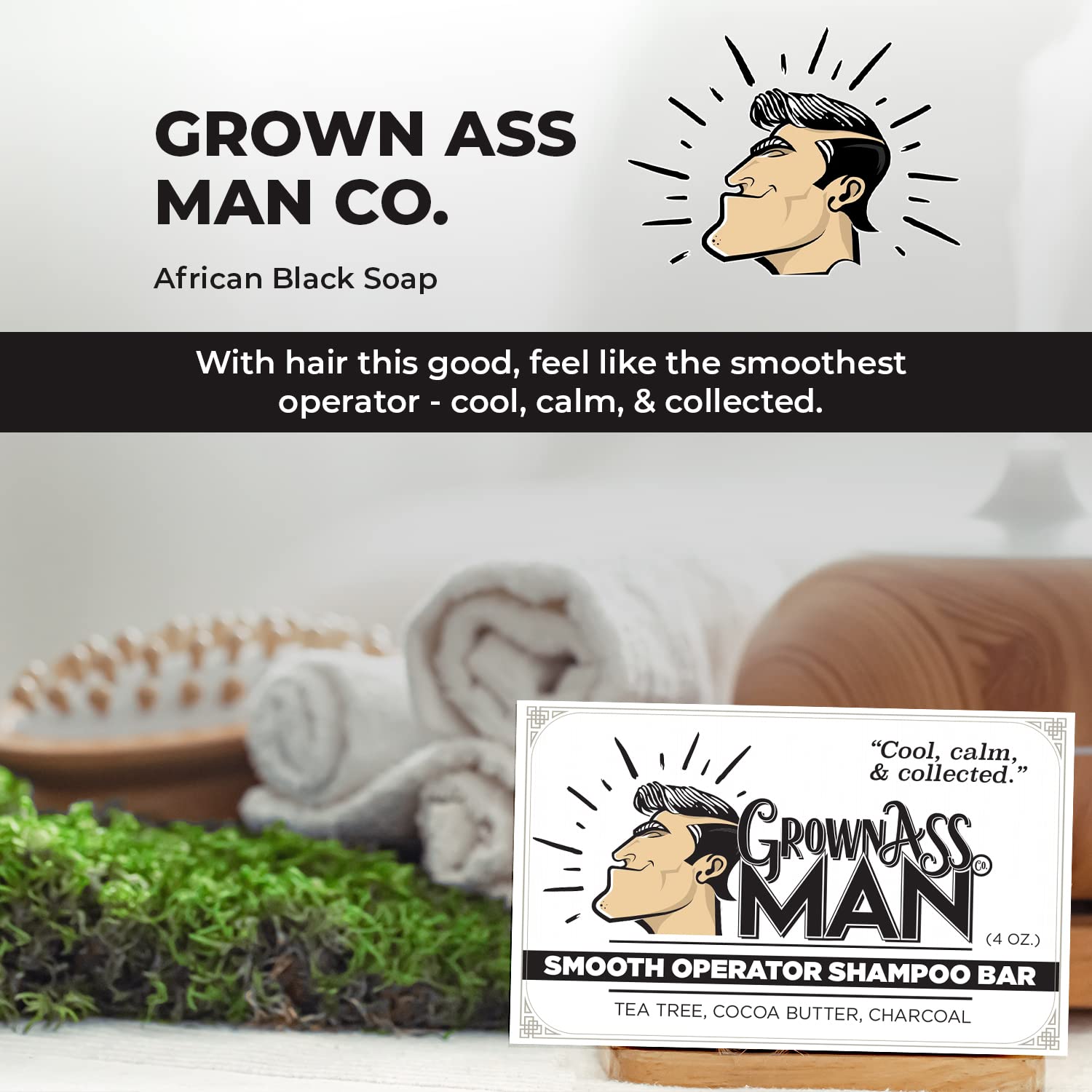 Solid Shampoo Bar Rich Lather 3 in 1: Hair, Beard & Body Wash - Plastic Free & Eco-Friendly, Natural & Organic Clean for All Hair Types, 4oz Bar (Smooth Operator, 6-Pack)