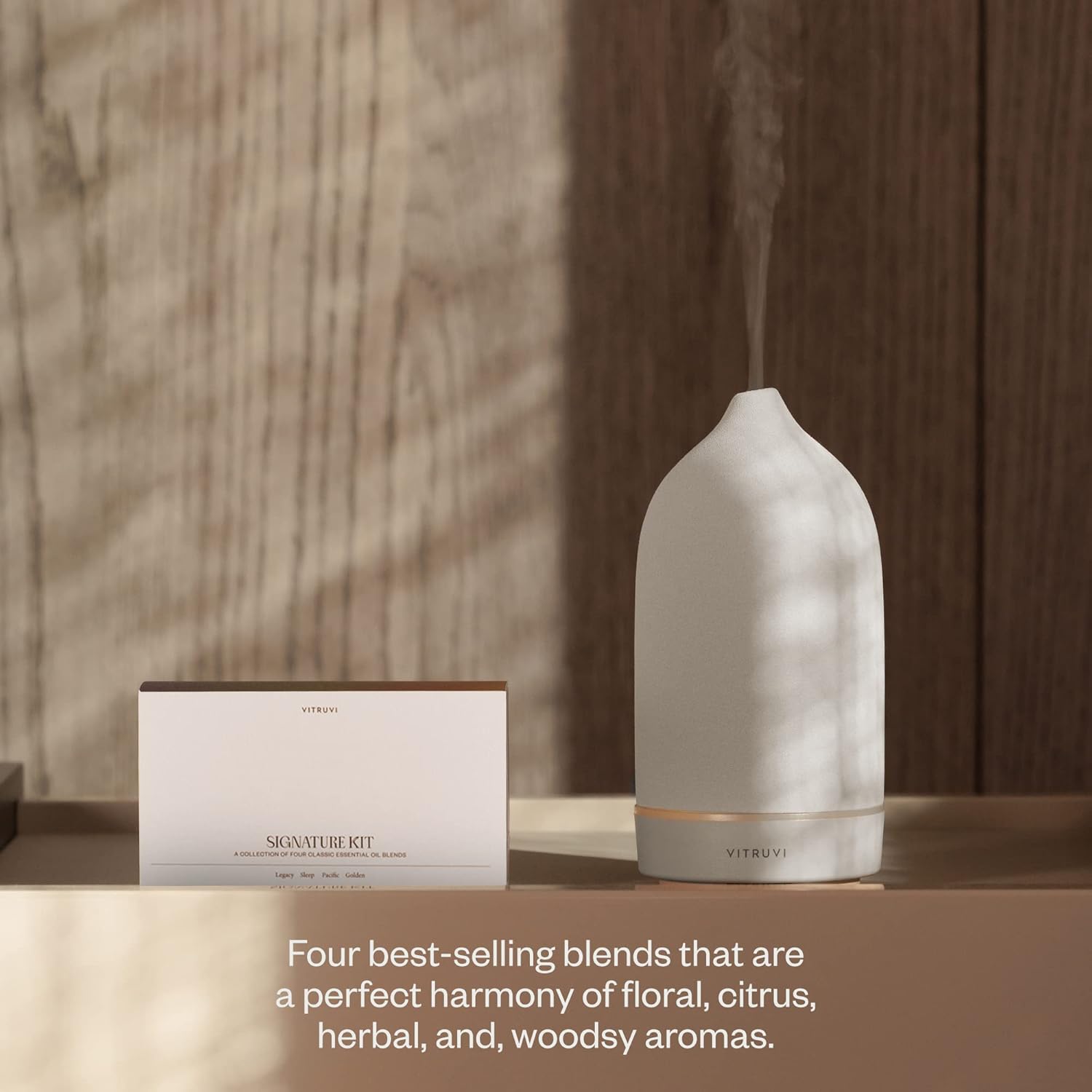 Vitruvi Signature Blend Essential Oils Kit | Floral, Citrus, Herbal, and Woodsy Aromas | 100% Pure Essential Oil Set, Essential Oils for Diffusers Aromatherapy 4x5 ml (0.17 fl. oz.)