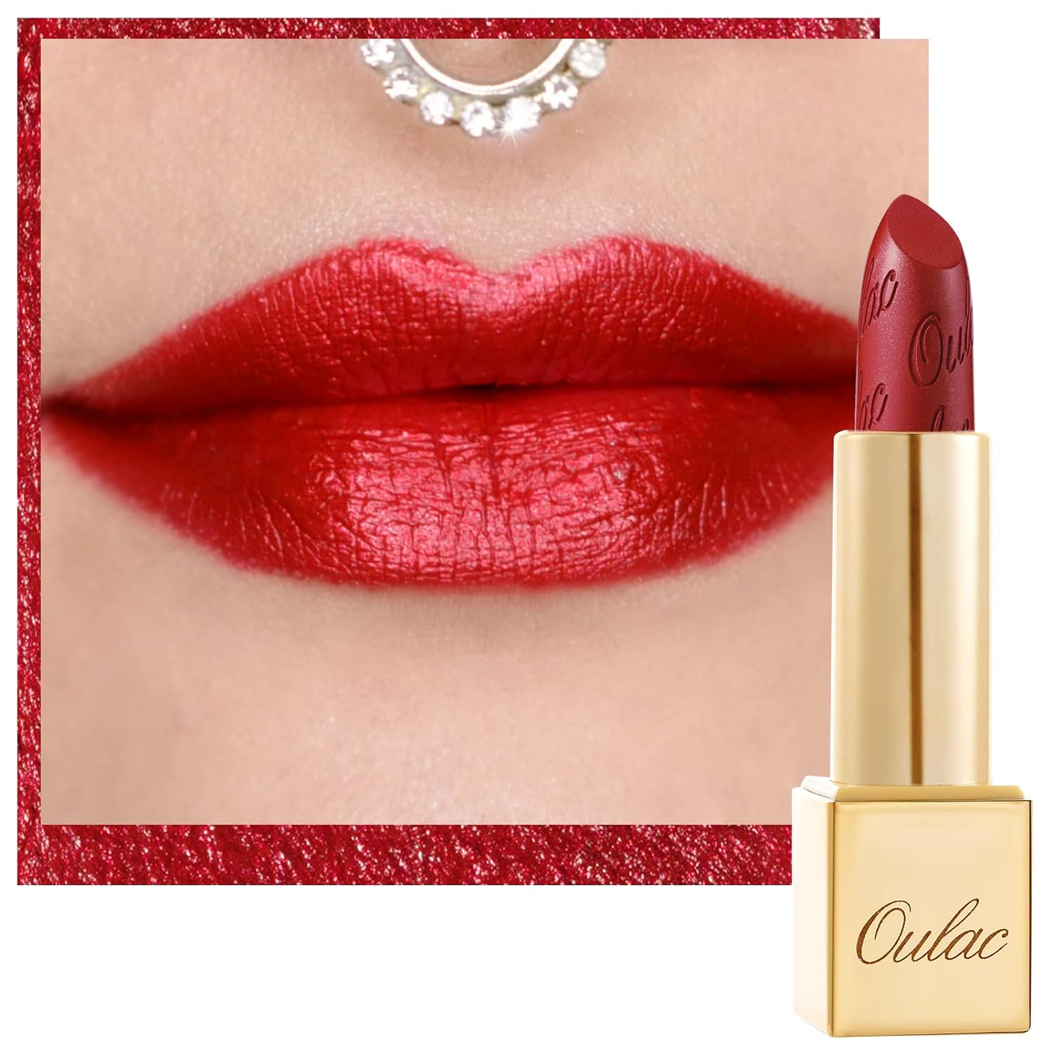 Oulac Red Lipstick Christmas Gifts for Women - Metallic 3D Shine Lightweight Hydrating Formula, High Impact Lip Color, Full Coverage Lip Makeup, Cherry Bomb(12)