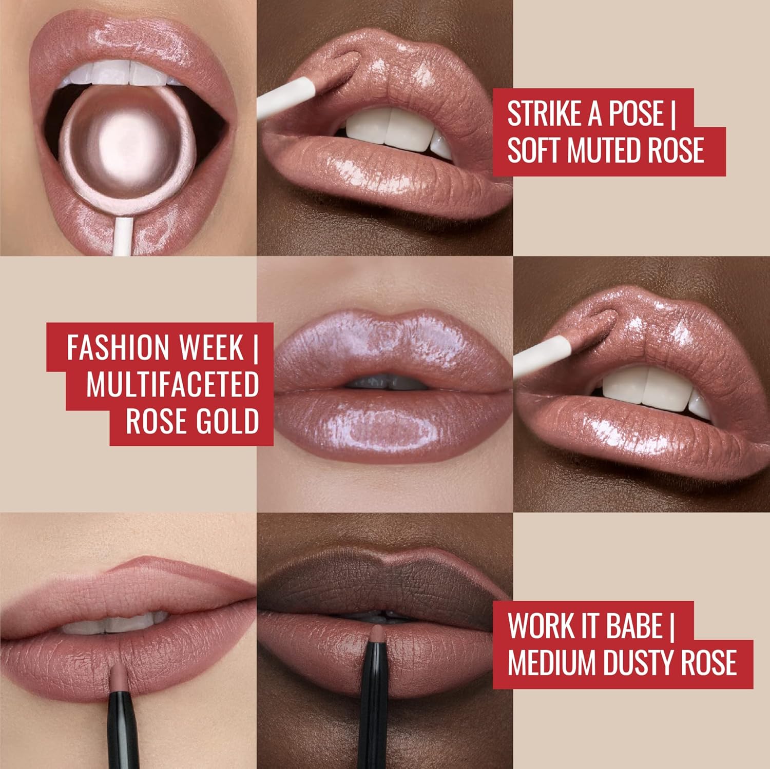 - SHIMMER LIP GLOSS & LIP LINER KIT: Get a wet, shiny, defined lip look with the Runway Rogue lip gloss and lip liner set. This kit includes the shimmery rose-pink ‘Strike a Pose’ and rose-gold ‘Fashion Week’ lip gloss shades and the dusty-rose ‘Work It Babe’ lip liner pencil. Both products use vegan formulas.