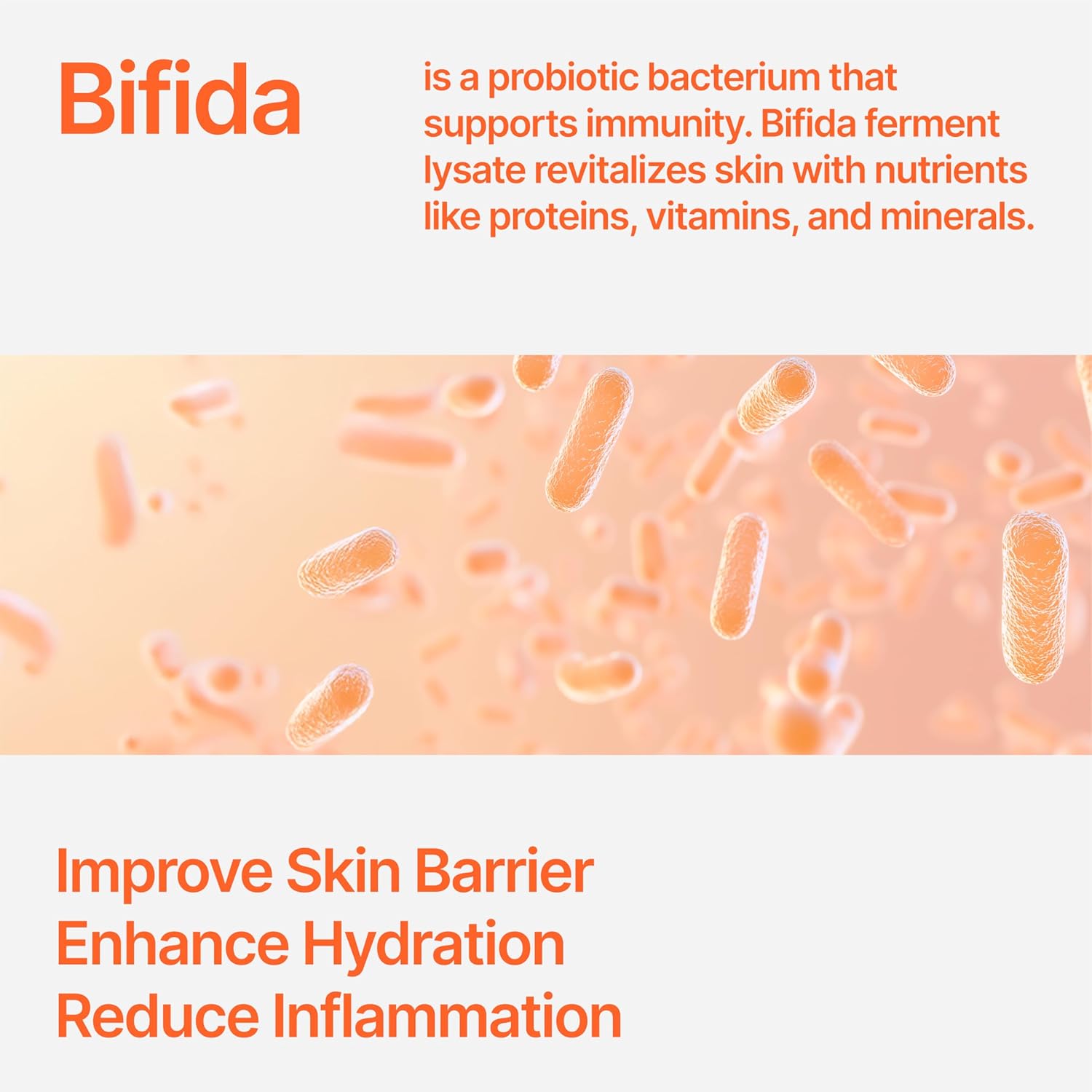 - BIFIDA: Bifida Ferment Lysate promotes anti-aging and improves skin elasticity and skin barrier function. With antioxidant properties, BIFIDA provides skin protection and helps strengthen skin.