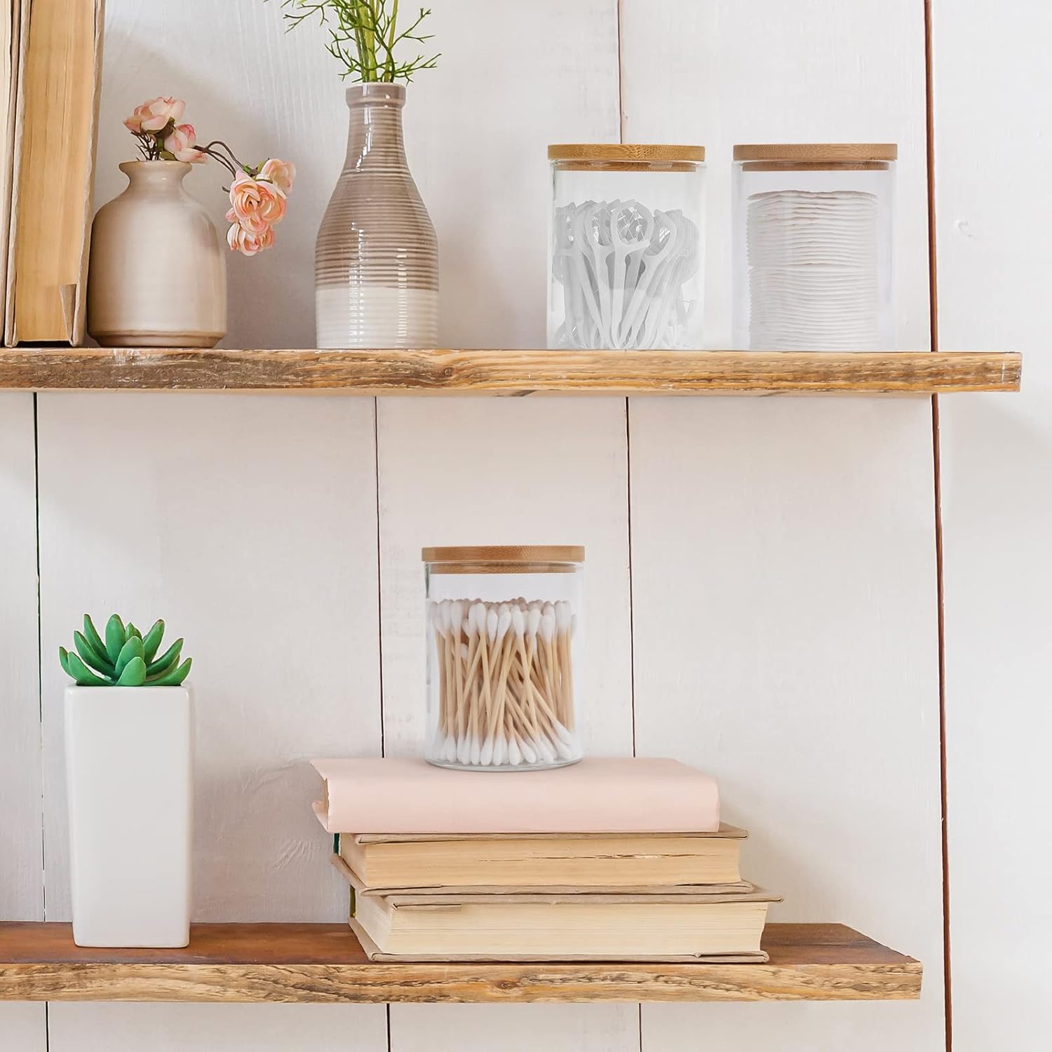 - What You Get: 3 pack Glass Qtip Holder Dispenser; Whether you're looking to declutter your bathroom or simply add a stylish touch, these jars offer the perfect solution. With their ample storage capacity and attractive design, they help you achieve a tidy and organized space while elevating the overall aesthetic of your bathroom.