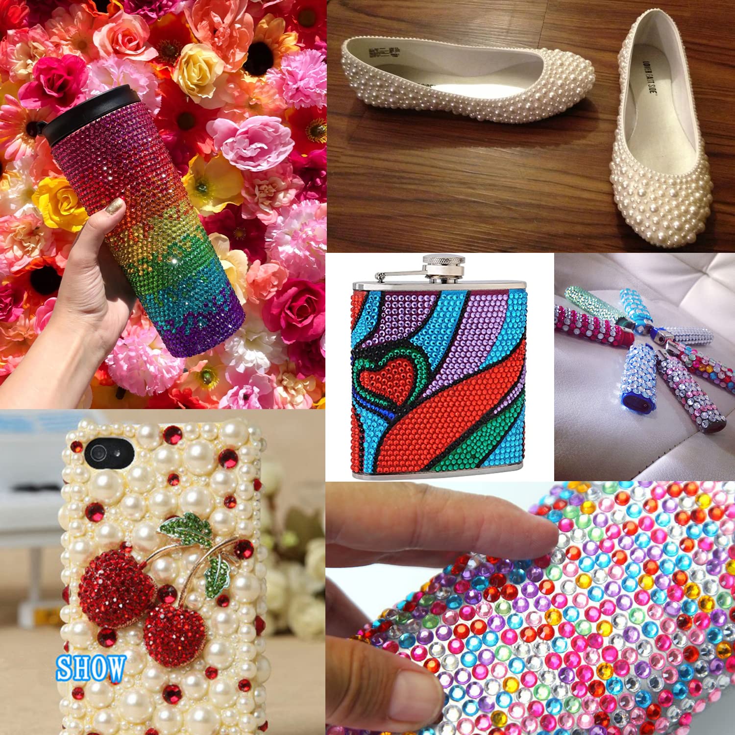 - 💎WIDE APPLICATION -- The Crystal Iridescent Nail Rhinestones And Flat Back Pearls Are Perfect for 3D Nail Art, Face Makeup And Handwork Such As Cell Phone Cases, Glasses, Tumblers, Bags, Guitars, Hair Clipers etc.