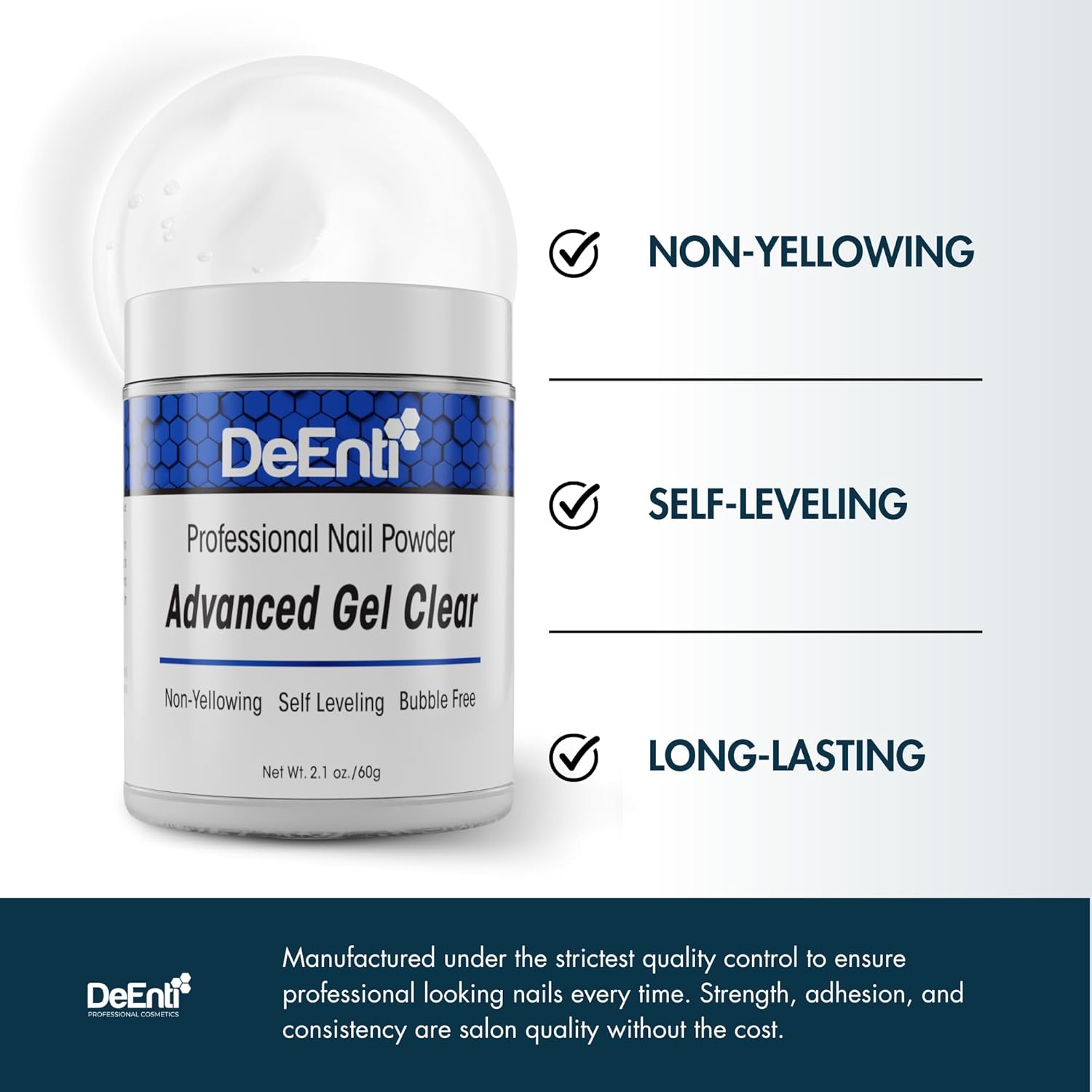 - PROFESSIONAL QUALITY NAIL POWDER polymer Advanced Gel Clear is crystal clear in color with a standard set speed. Perfect for at home manicures, nail painting and gel polish, our gel powder dip is long-lasting, chip resistant and a perfect addition to your acrylic nail dip kit.