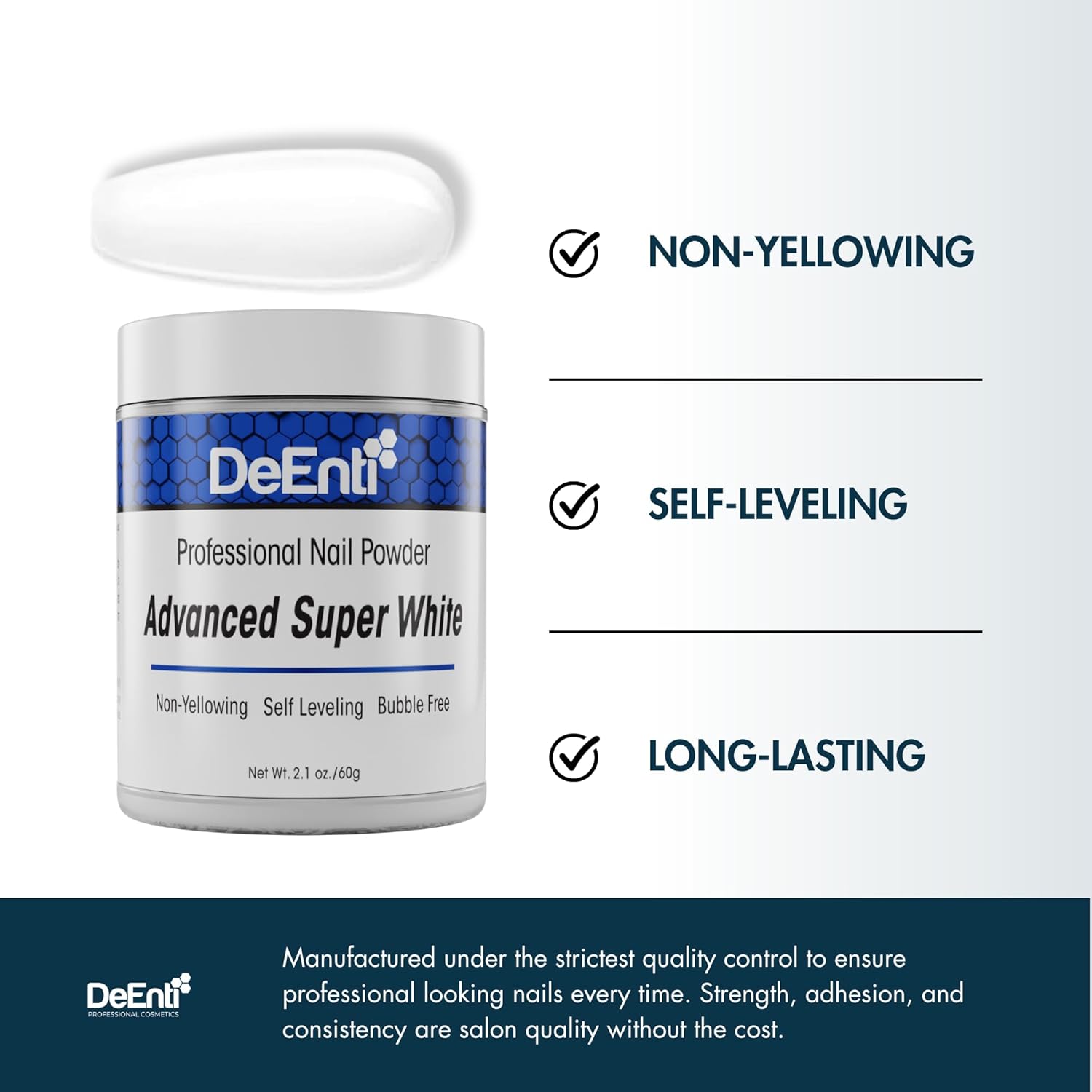 - PROFESSIONAL QUALITY NAIL POWDER polymer Advanced Gel Super White is snow white in color with a standard set speed. Perfect for at home manicures, nail painting and gel polish, our gel powder dip is long-lasting, chip resistant and a perfect addition to your acrylic nail dip kit.