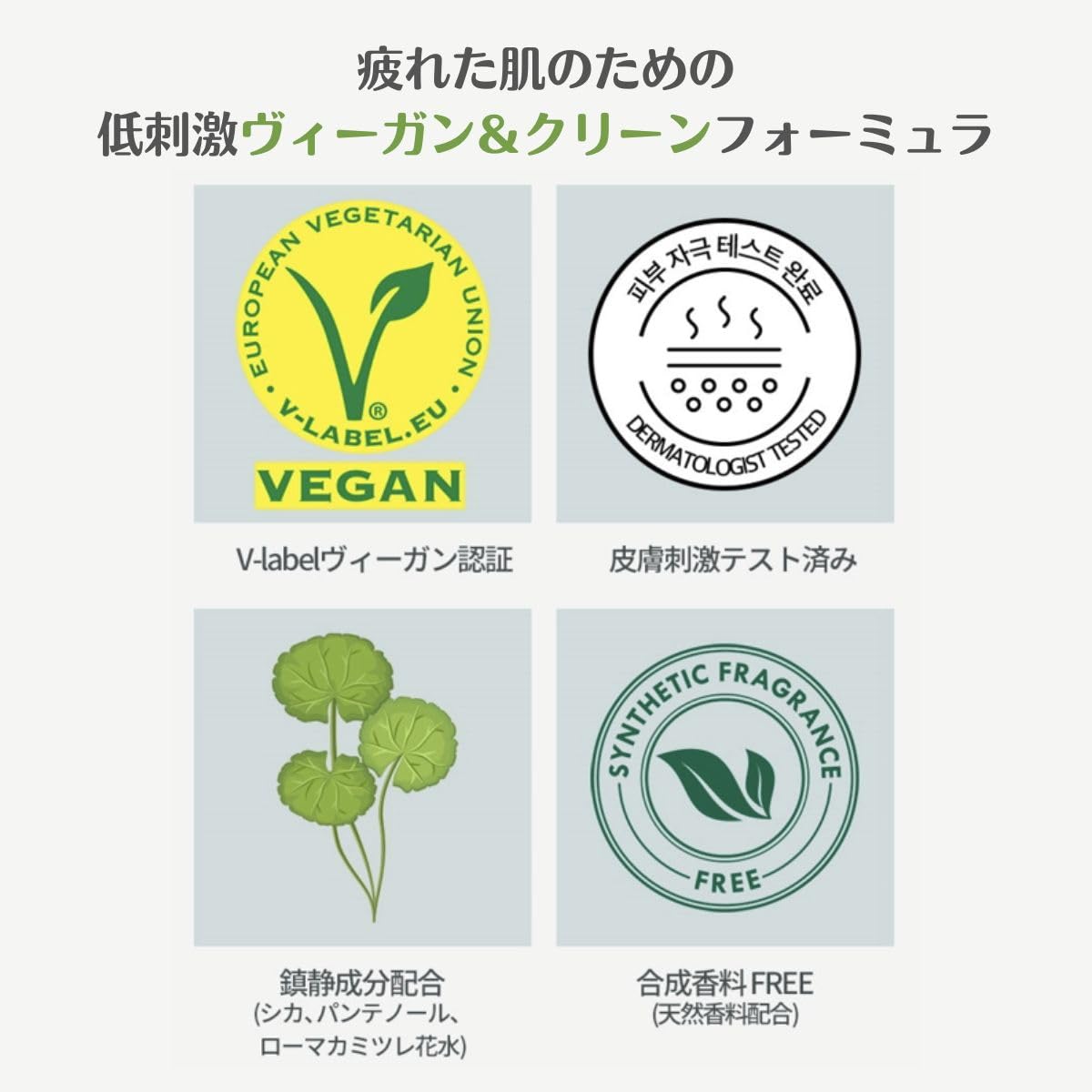 - SKIN CALMING COMBINATION(CICA + PANTHENOL + CAMOMILE)