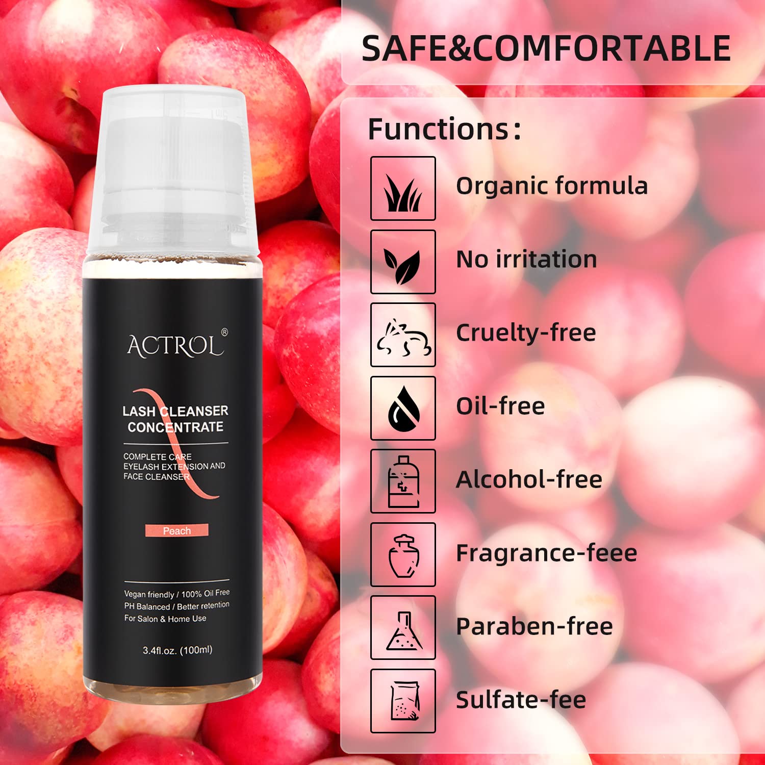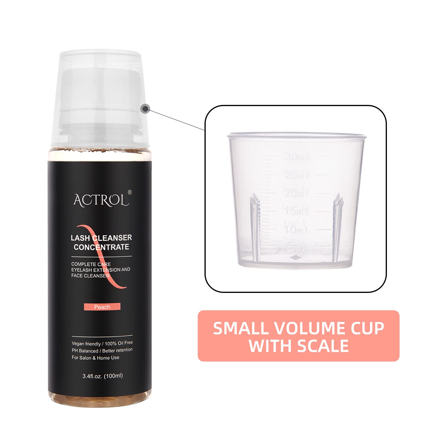 Eyelash Cleanser Concentrate 100ml Peach Professional Lash Shampoo Foaming Cleanser DIY Paraben & Sulfate Free Non-lrritating Wash for Extensions Lashes with Salon Care-Makes 20 Bottles