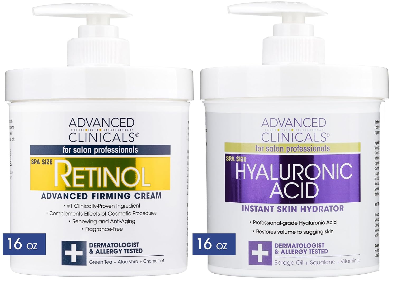 Advanced Clinicals Retinol Cream + Hyaluronic Acid Lotion Face & Body Skin Care. Anti Aging Dry Skin Rescue Creams Reduce Appearance Of Wrinkles, Fine Lines, & Sagging Skin, 16 Oz (Pack of 2)