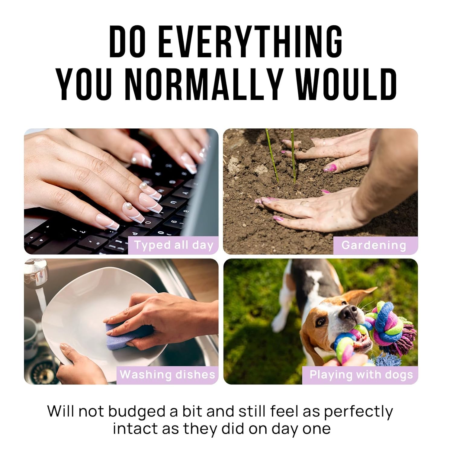 - Do Everything You Normally Would: All BTArtbox press on nails almond offer feature protective building gel finish so that you are able to do everything you normally would, such as typing, gardening, houseworking or playing with your pet. They will not budged a bit and still feel as perfectly intact as they did on day one