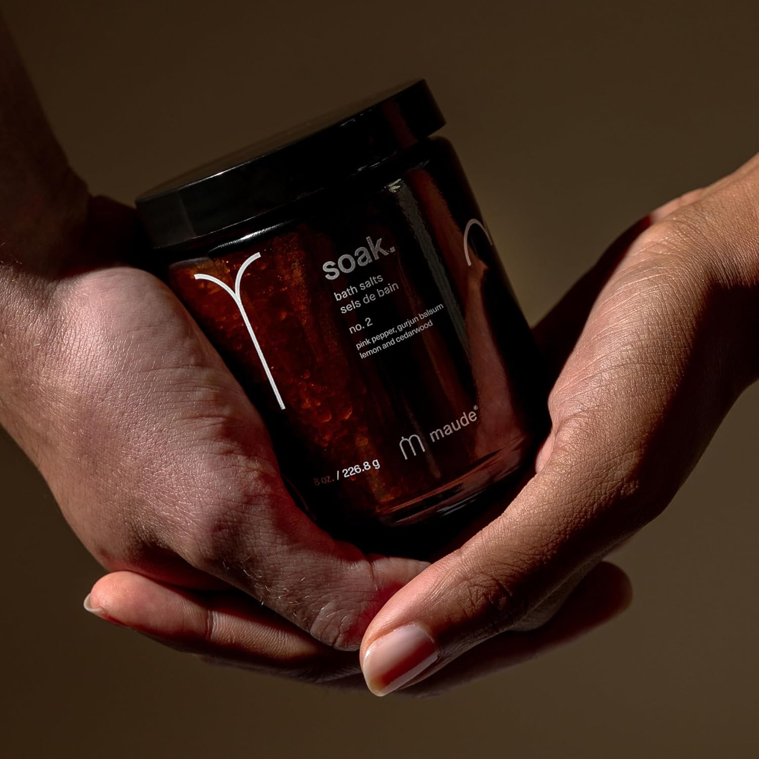 Maude Soak No. 2 - Nourishing Mineral Bath Salts - Hand-Harvested Dead Sea Salt with Magnesium & Potassium Chloride - Soften & Rejuvenate Skin - Notes of Pink Pepper & Lemon (8 oz)