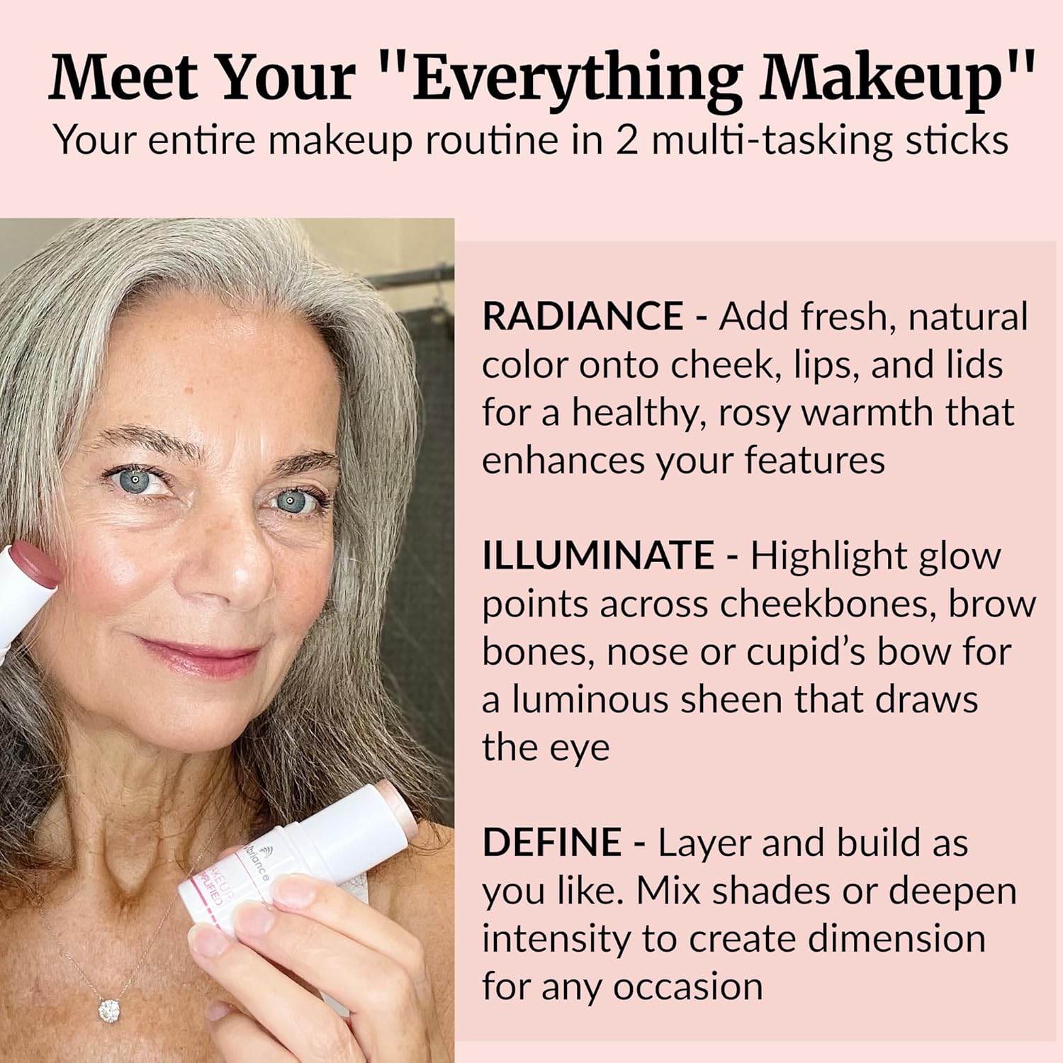 - Includes a Blush and Highlighter - This bundle includes 1 “Illuminate” Highlighter Stick and 1 “Radiance” Cream Blush Stick. Designed for mature skin, these versatile sticks bring a natural glow and healthy tint to cheeks, lips, eyes, and collarbone.