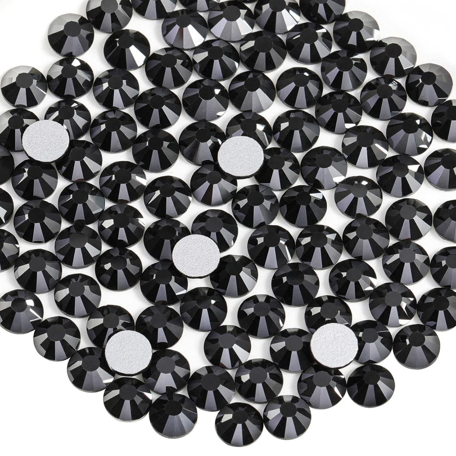 Beadsland 1440pcs Flat Back Crystal Rhinestones Round Gems for Nail Art and Craft Glue Fix, Jet Hematite,SS6,1.9-2.1mm