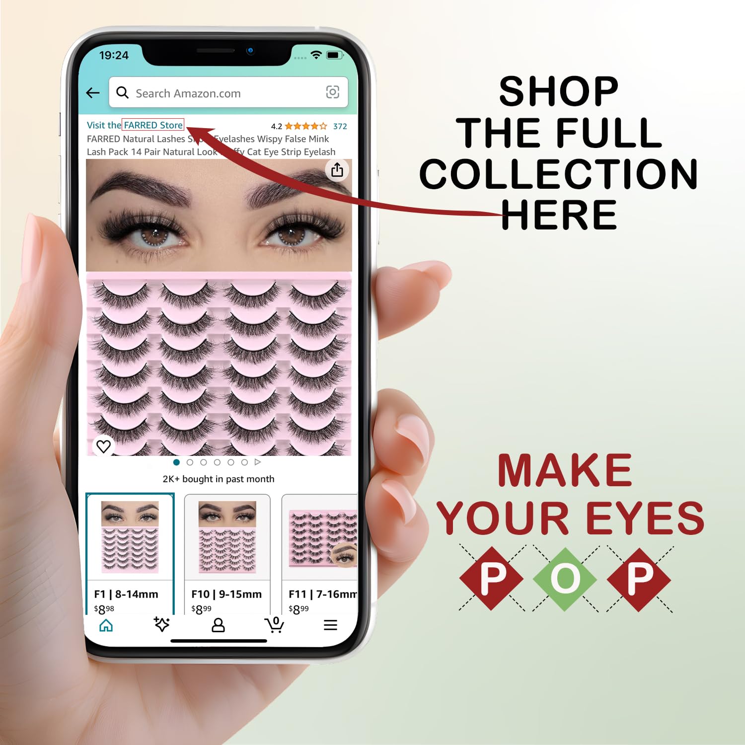 FARRED Lashes Natural Look Short Cat Eye Natural Lashes Fluffy Wispy False Eyelashes 14 Pairs Faux Mink Strip Eye Lashes Pack for Daily Makeup (F7 | 6-15mm)
