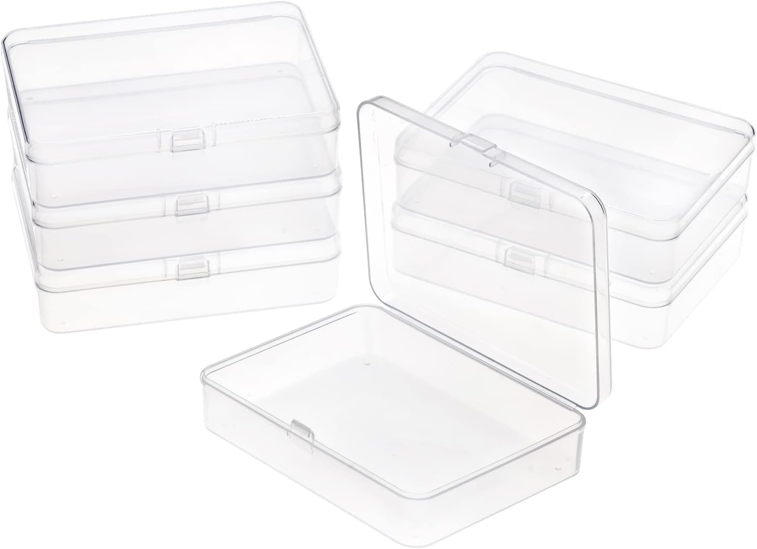 ISKYBOB 6 Packs Rectangle Small Clear Plastic Storage Containers Box Case with Hinged Lid Crafts Organizer for Crayon, Bobby Pin, Beads (4.5 x 3.4in)