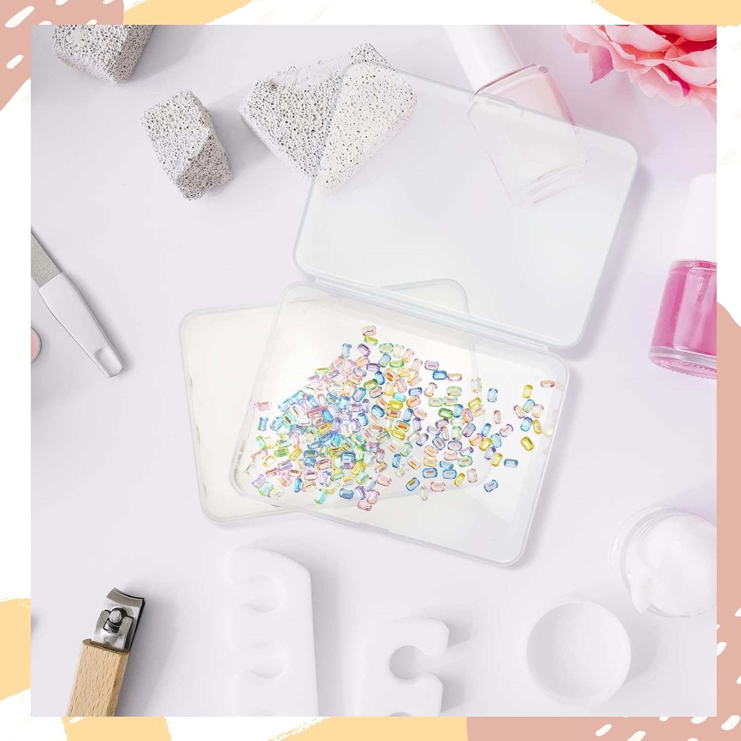 - Perfect small clear boxes for storing and organizing. Great for organizing crafts rhinestones, beads, bobby pins, jewelry findings, crayons, swabs, earplugs, dental floss, etc.
