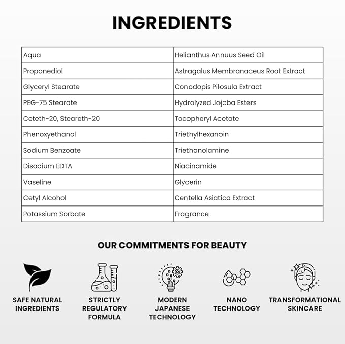- 𝐍𝐨𝐮𝐫𝐢𝐬𝐡𝐞𝐬 𝐚𝐧𝐝 𝐇𝐲𝐝𝐫𝐚𝐭𝐞𝐬: Enriched with natural ingredients like Sunflower Oil and Jojoba Oil, our maternity stretch mark lotion deeply nourishes and hydrates your belly skin, enhancing its elasticity and leaving it with a radiant glow.