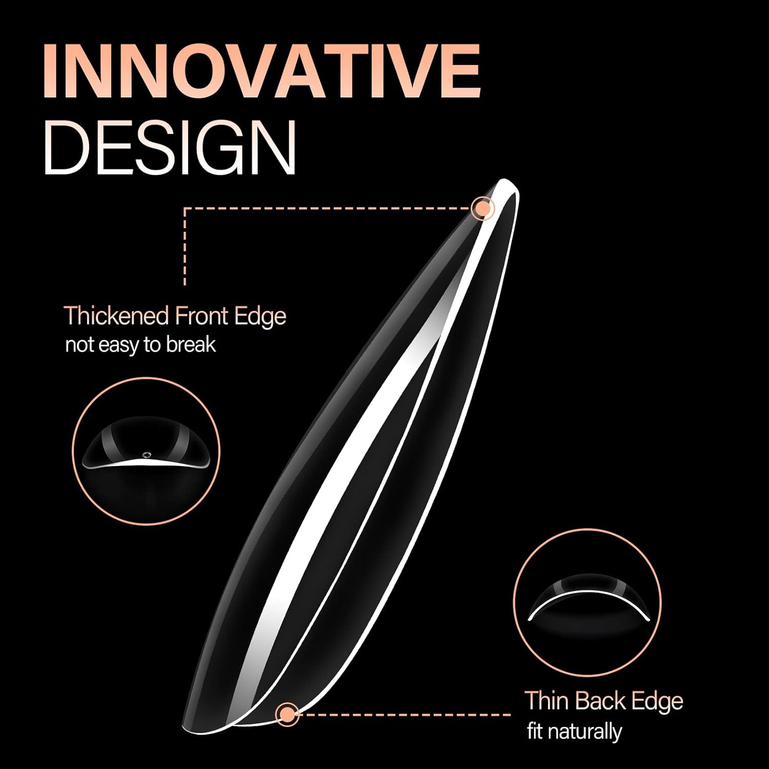 - 【Outstanding Design】Using soft pre-shaped Nails Tips to design, it can facilitate everyone to buy and use directly without cutting, helping you save much time. Then choosing our almond nail tips not only shows its beautiful shape but also makes your fingers look more natural. Besides, you can design what nail art effect you like, realizing DIY manicure nail tips freely.