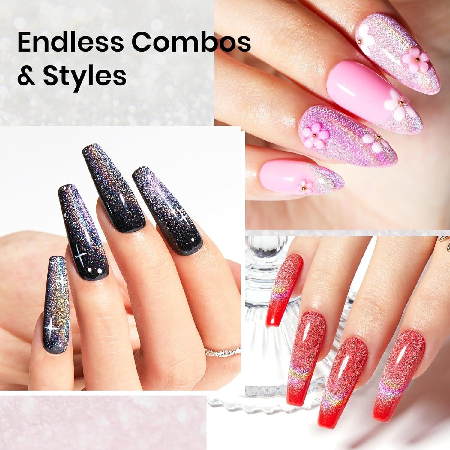- 【2025 Limited Edition Color Cat Eye Gel】Special "Magical Journey" gel nail polish with a magnet, create your 2025 limited shining nail style to be more sparkling every day. Tips: Place the magnetic stick over the surface about 3-5mm for 5-10 secs to get your desired effect!!!!