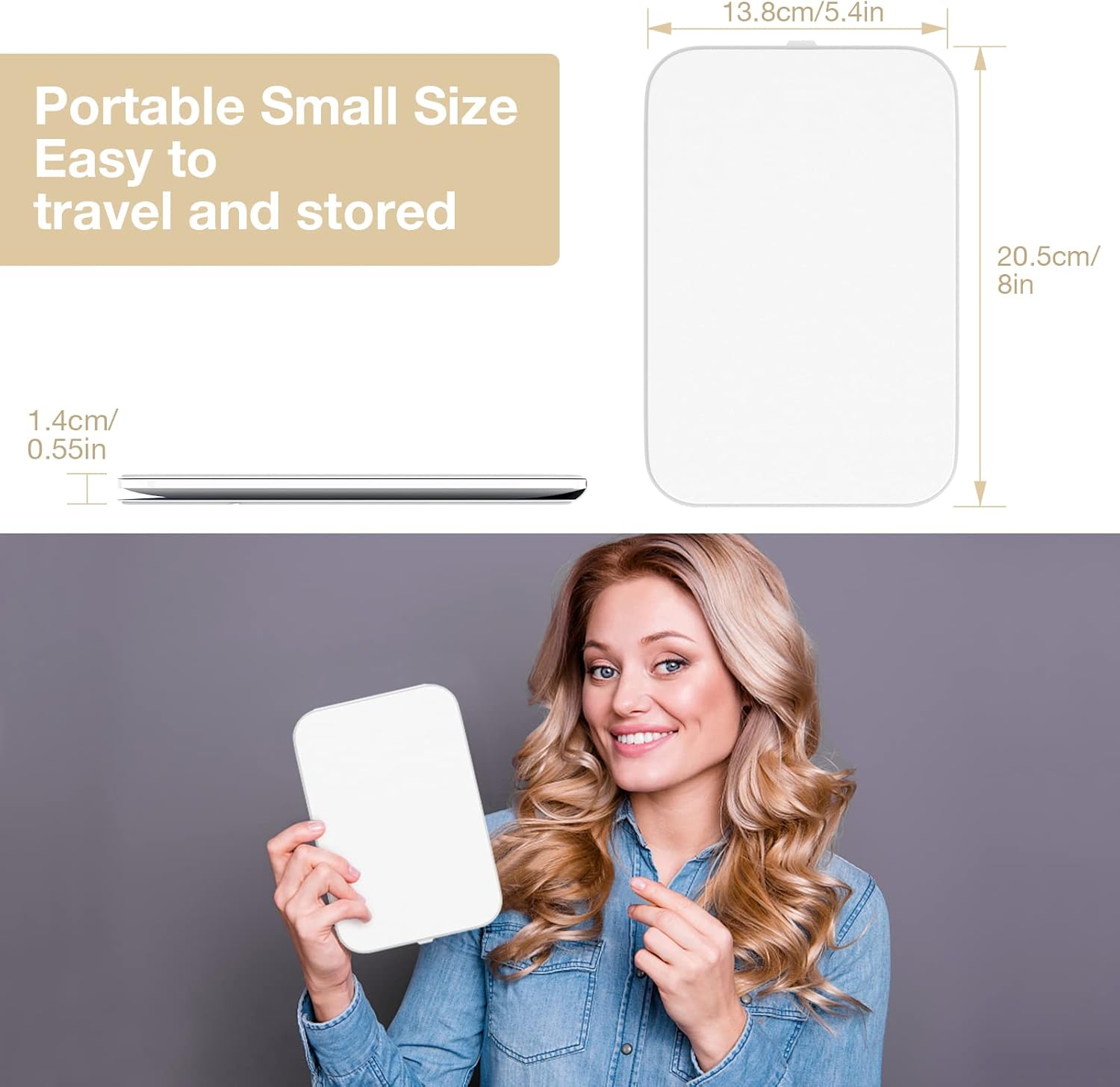 - 【Portable Travel Vanity Mirror】The LED makeup mirror is easy to carry and store, you can easily put the light mirror in your handbag or luggage, it is the perfect travel companion