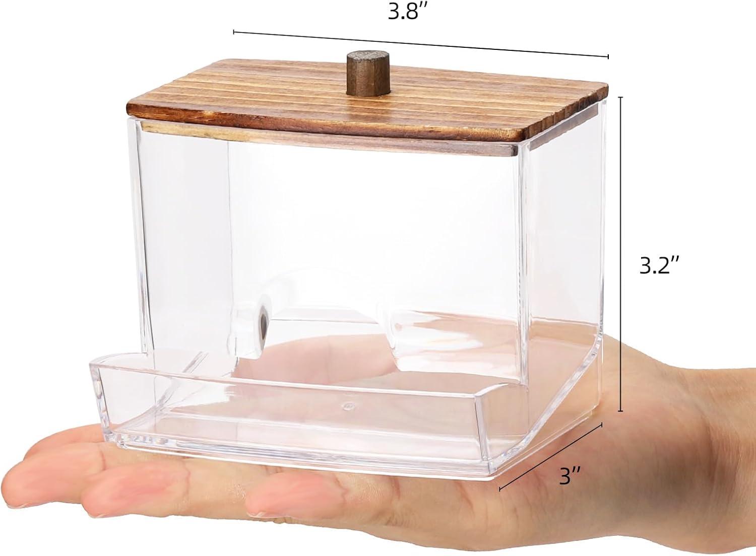 Tbestmax 10oz Qtip Holder Dispenser with Black Wood Lids, Big Cotton Swab Holder Bathroom Accessories Organizer for Storage-Qtips Cotton Ball, Floss Container