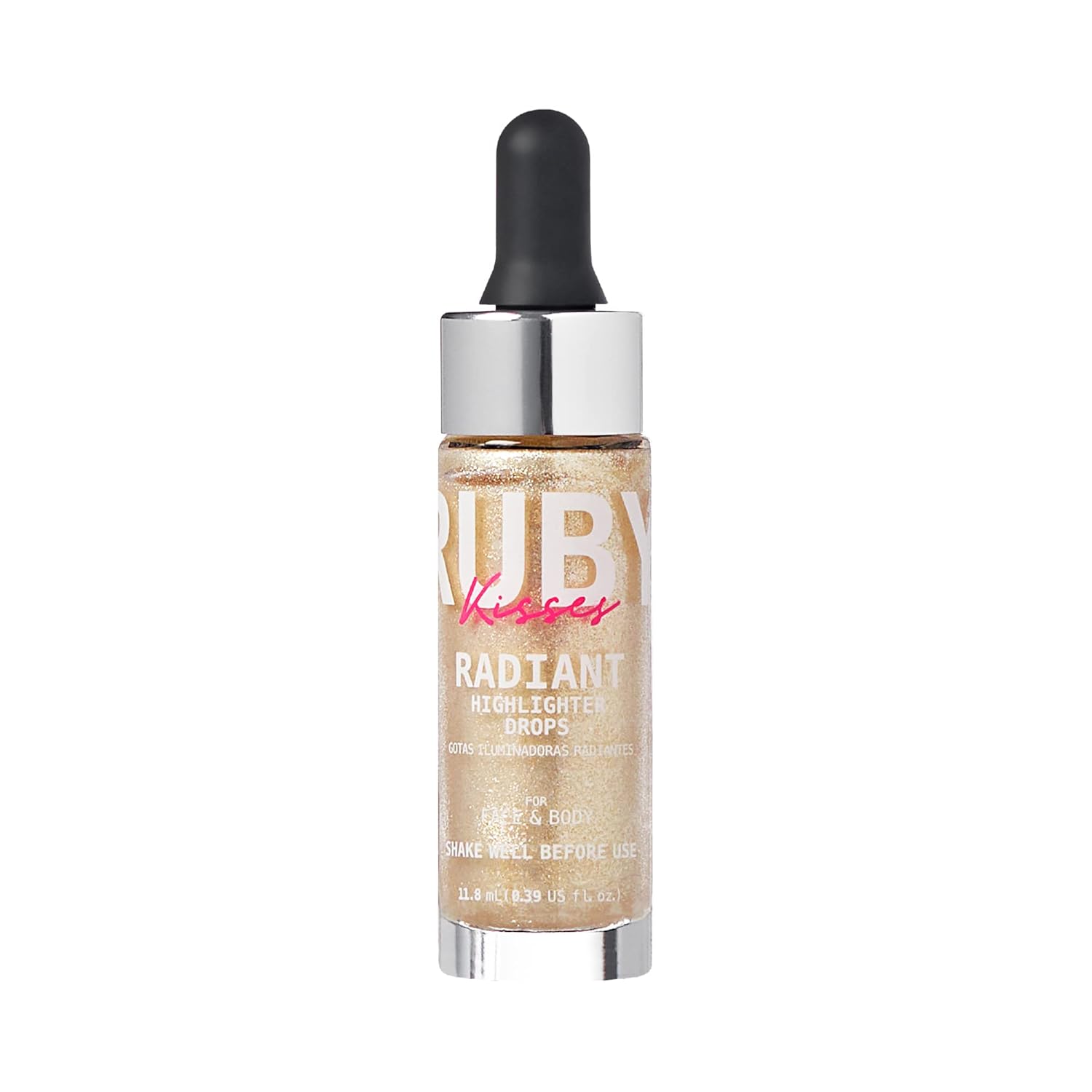 Ruby Kisses Radiant Drops, Shimmer Liquid Highlighter Makeup, Smooth Illuminator for Face Body, Natural Glow Dewiness Glitter for Skin (CHAMPANGE)