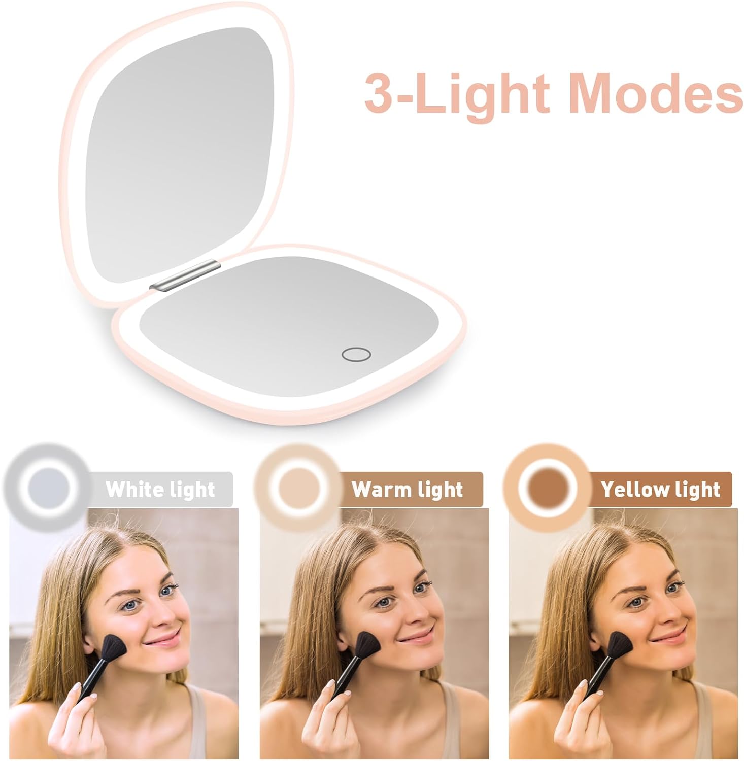 deweisn Compact Mirror, Lighted Travel Makeup Mirror with 1X/10X Magnifying Double Sided Dimmable Portable Pocket Mirror for Handbag and Pocket, USB Charging(Pink)