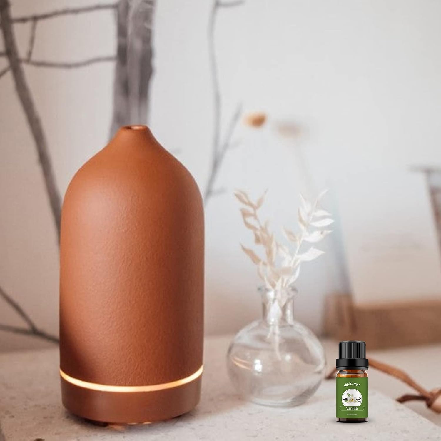 - Vanilla Oil For Diffuser: Add 3-4 drops of vanilla oil to the diffuser, the rich scent of vanilla will fill your room soon, to create a warm & romantic atmosphere.