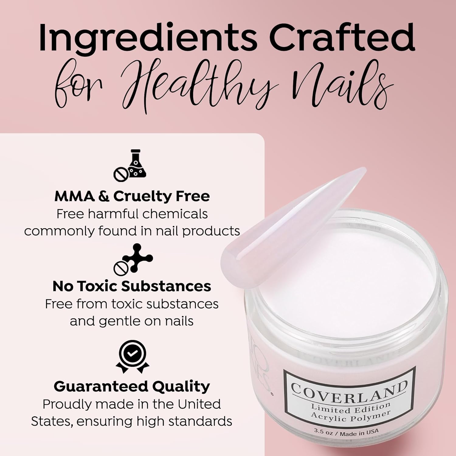 - βοΈππππ ππππππππ πππππ: The flexibility and adhesion properties of Coverland colored acrylic nail powder make it easy to shape nails with precision, and offers nice control for professionals who prefer to work with a polymerization rate of moderate to fast.