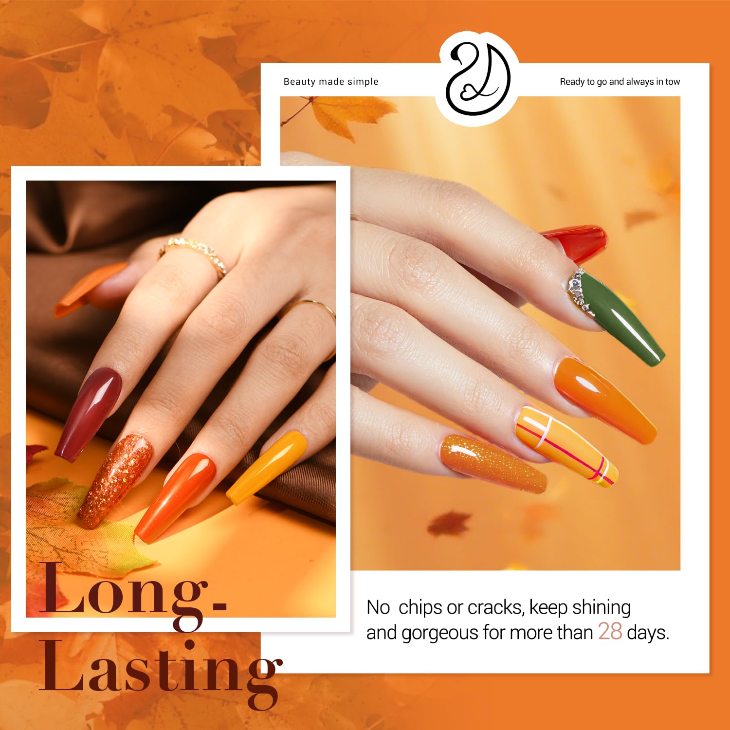 - 8-Color Upgraded Starter Kit: AZUREBEAUTY 30 Pcs fall theme dip nails powder starter kit: 8*10 g (0.33 Oz) color powder, 4*10 ml dip powder liquid set(base coat/activator/top coat/matte top coat), 2*liquid brush replacement, 1*nail brush,1*nail file, 1*nail buffer, 1*dip powder recycling tray. What's more, 10*nail sticks and 2*orangewood stickers are added in the kit for color testing as well as ease of use
